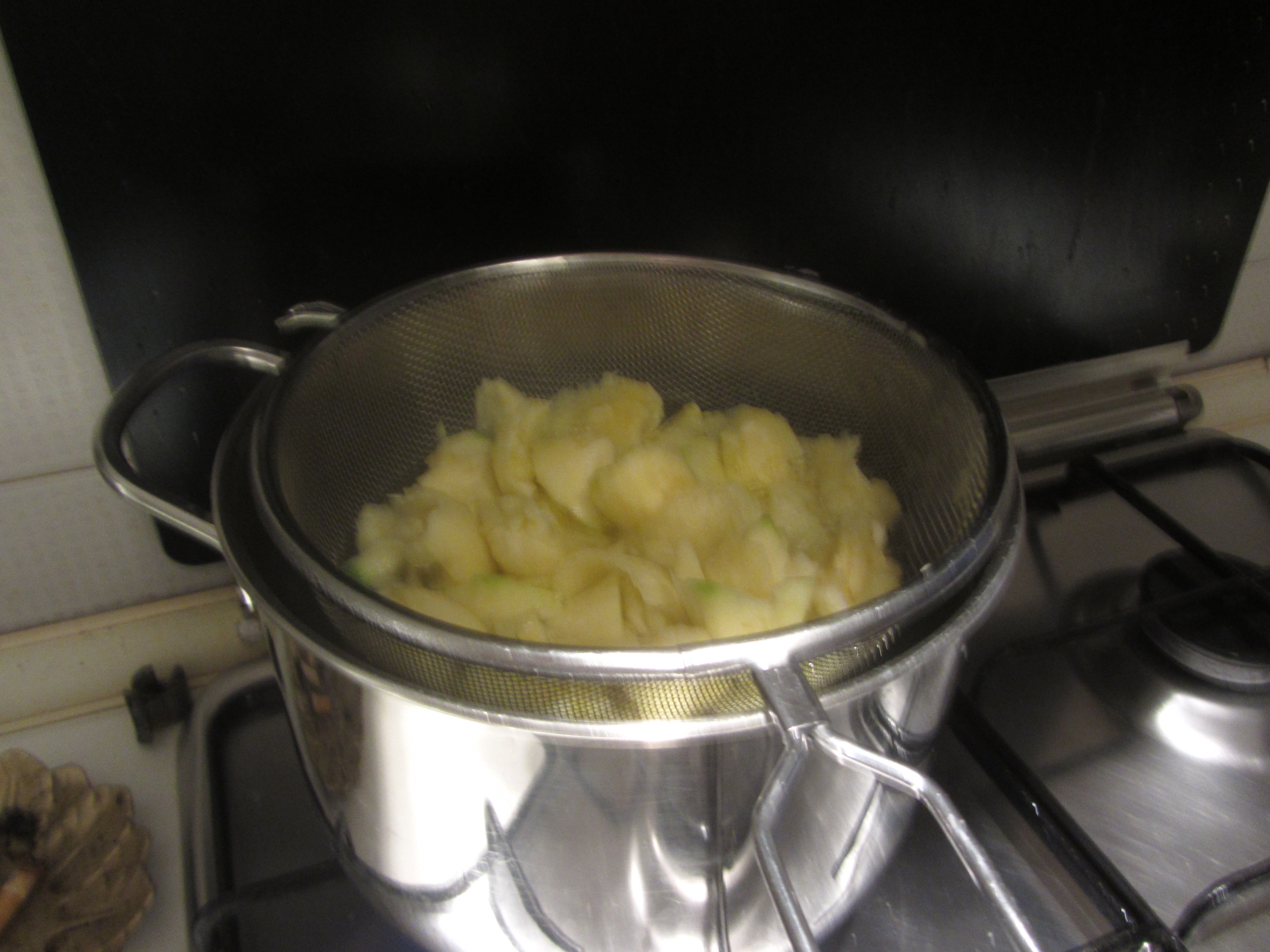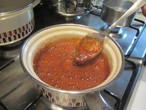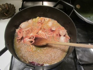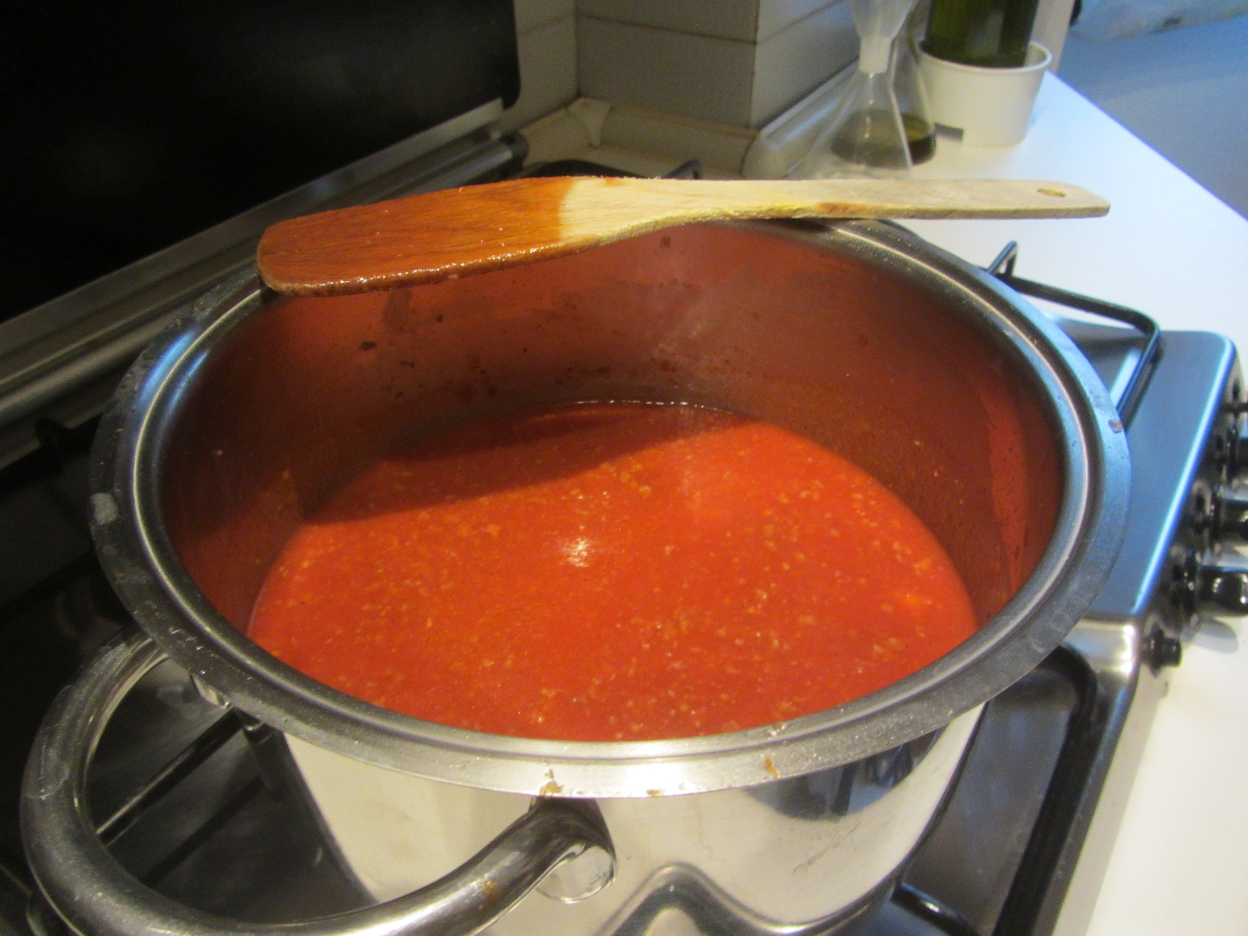 Portare a bollore, quindi abbassare la fiamma e fare restringere la massimo.