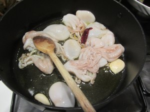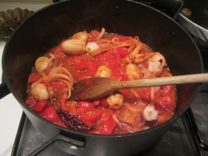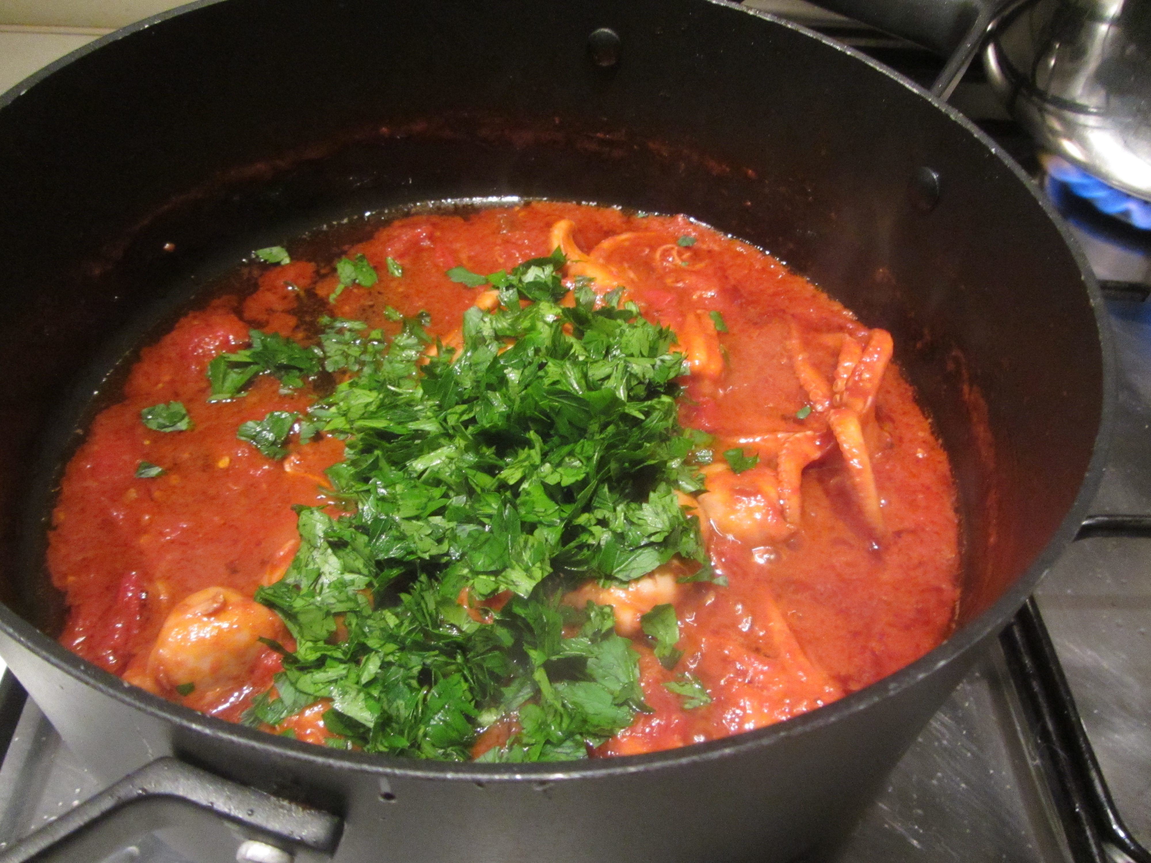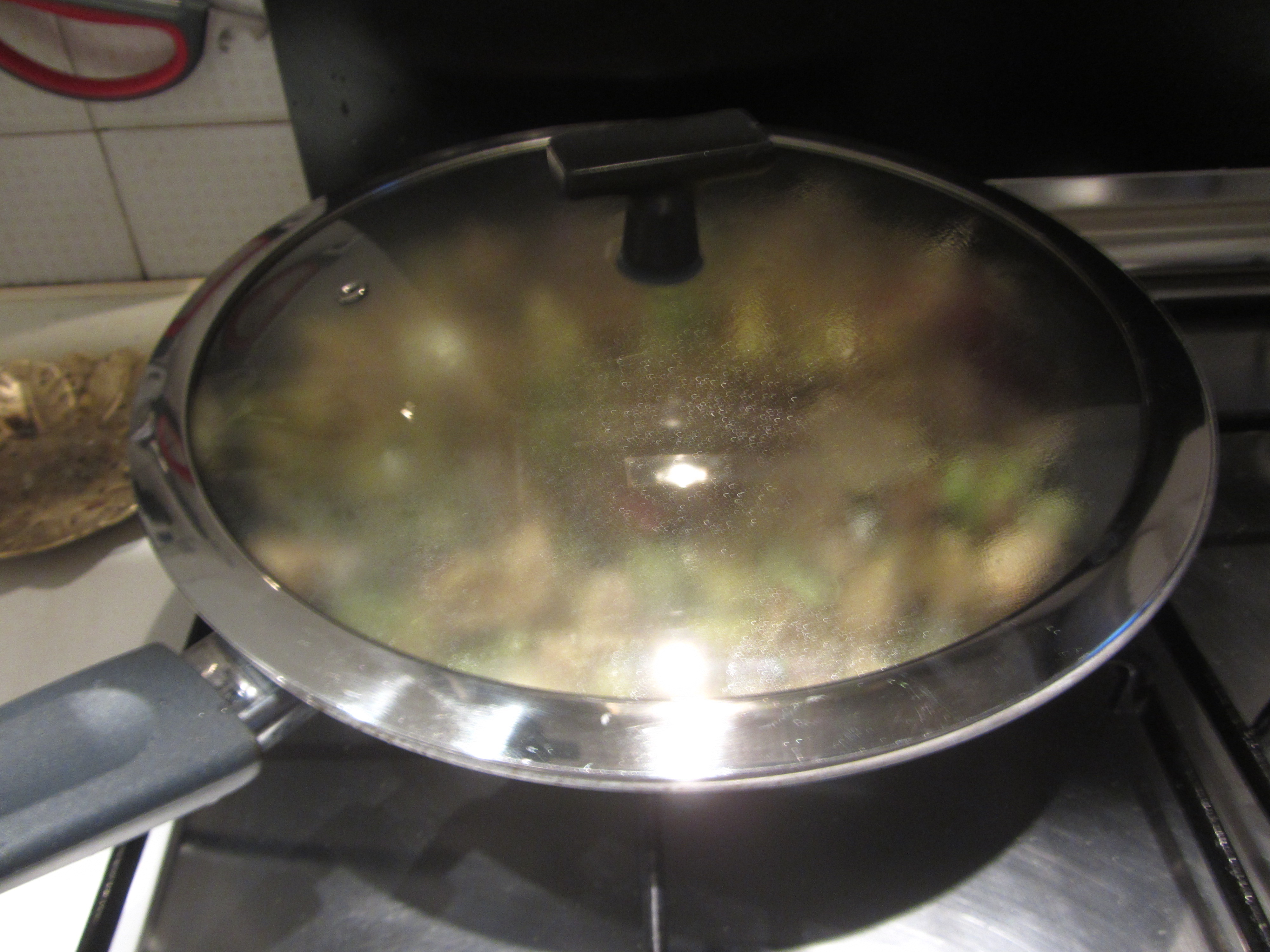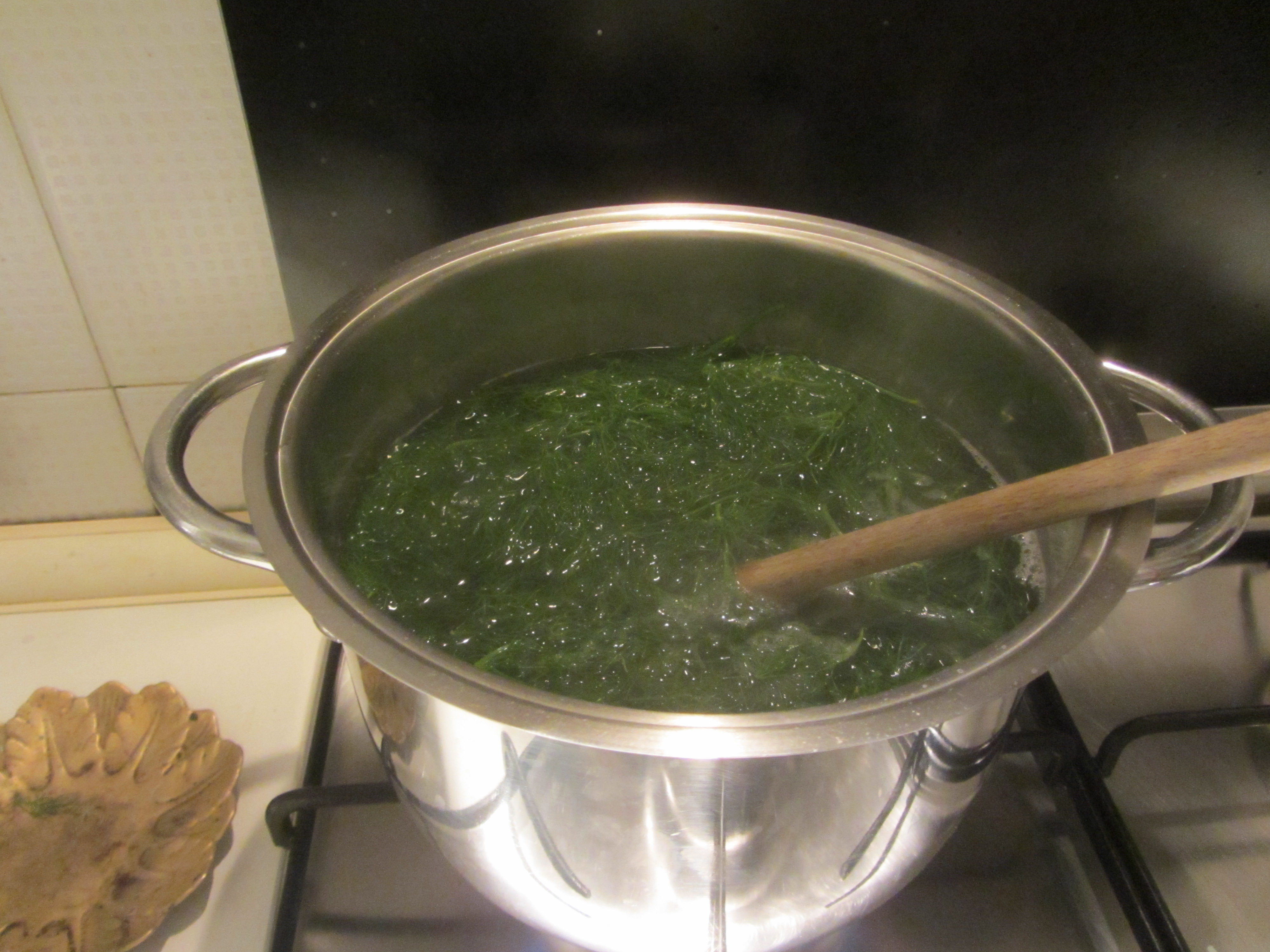 Portare a bollore, quindi abbassare la fiamma e fare restringere la massimo.