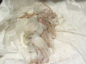 Mettere le melanzane fritte a perdere l’olio su carta assorbente.