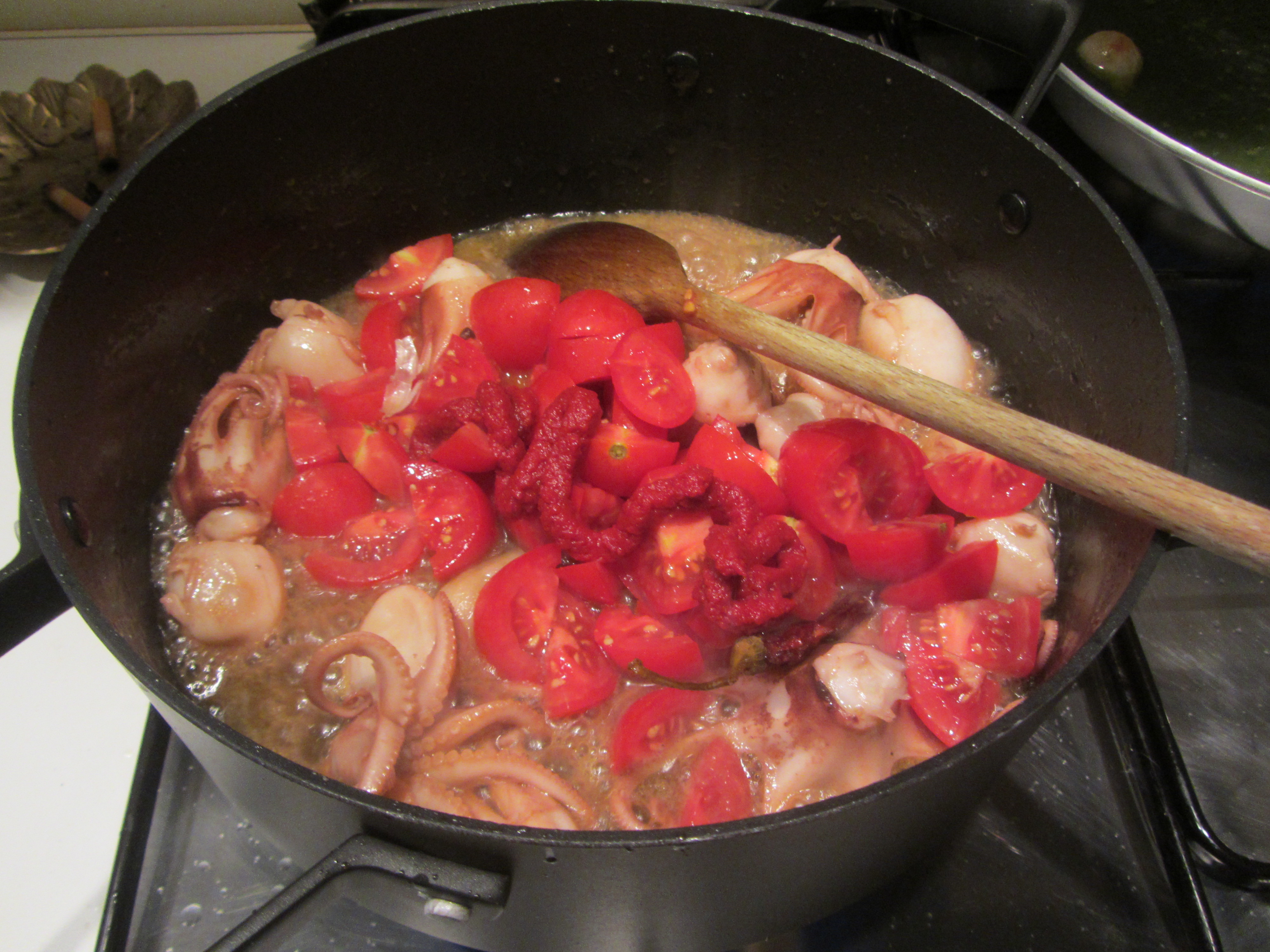 Evaporato il vino rosso aggiungere la passata o i pomodori a spicchi.