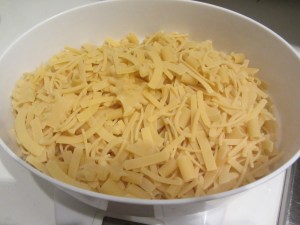 Un’altro strato di ragù e formaggio. Quindi coprire con la besciamella.