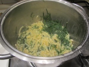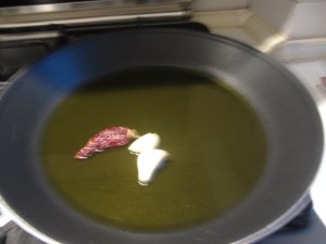 Rosolare il soffritto con olio di oliva extravergine e salare.