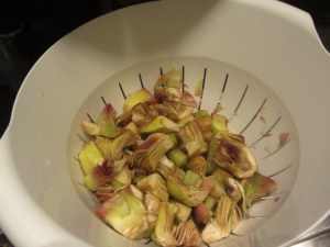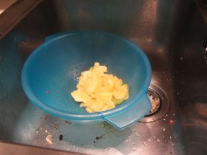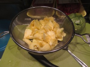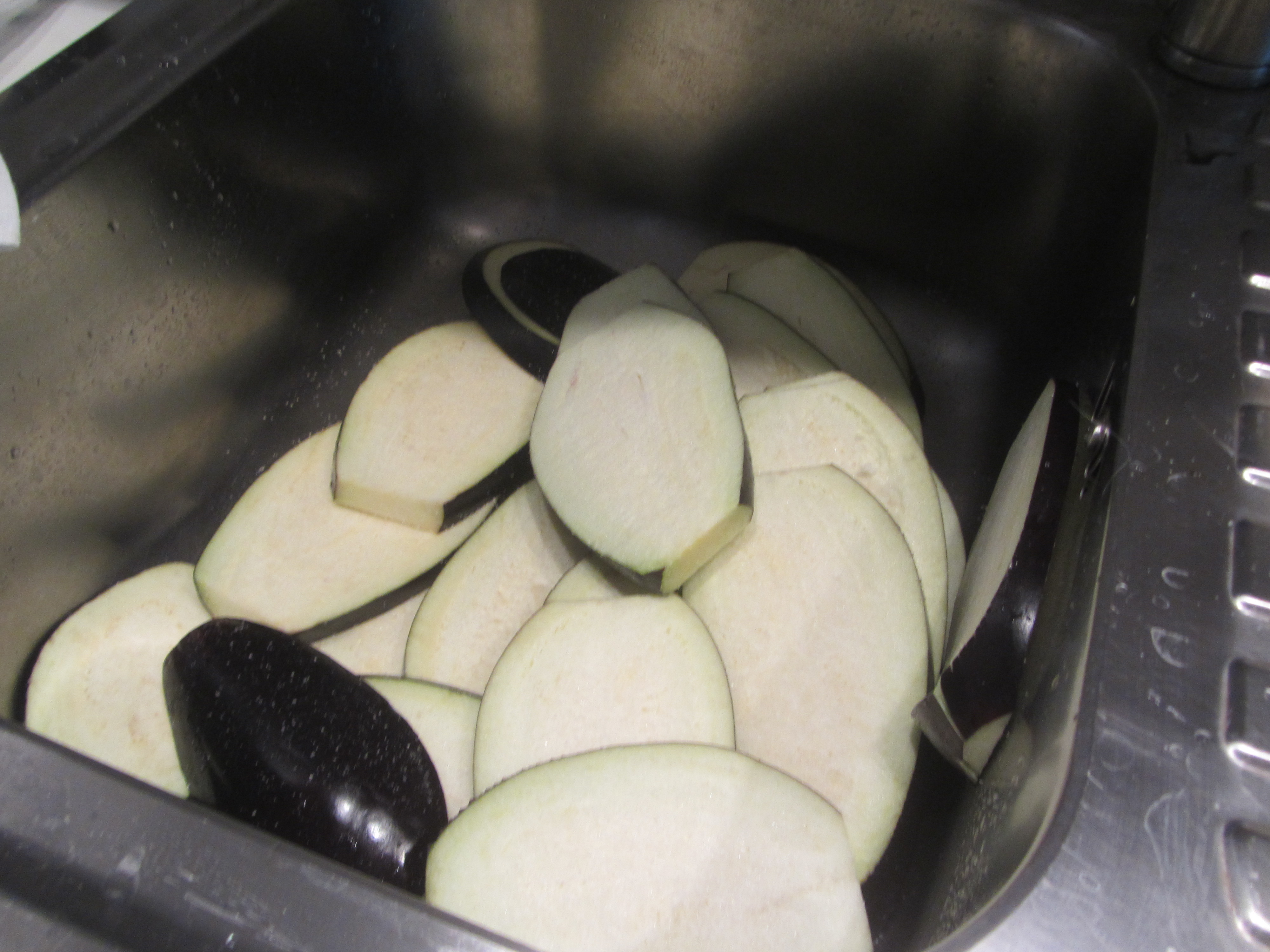 Porre un peso sopra le melanzane e lasciare almeno 2 ore a perdere i succhi.