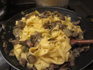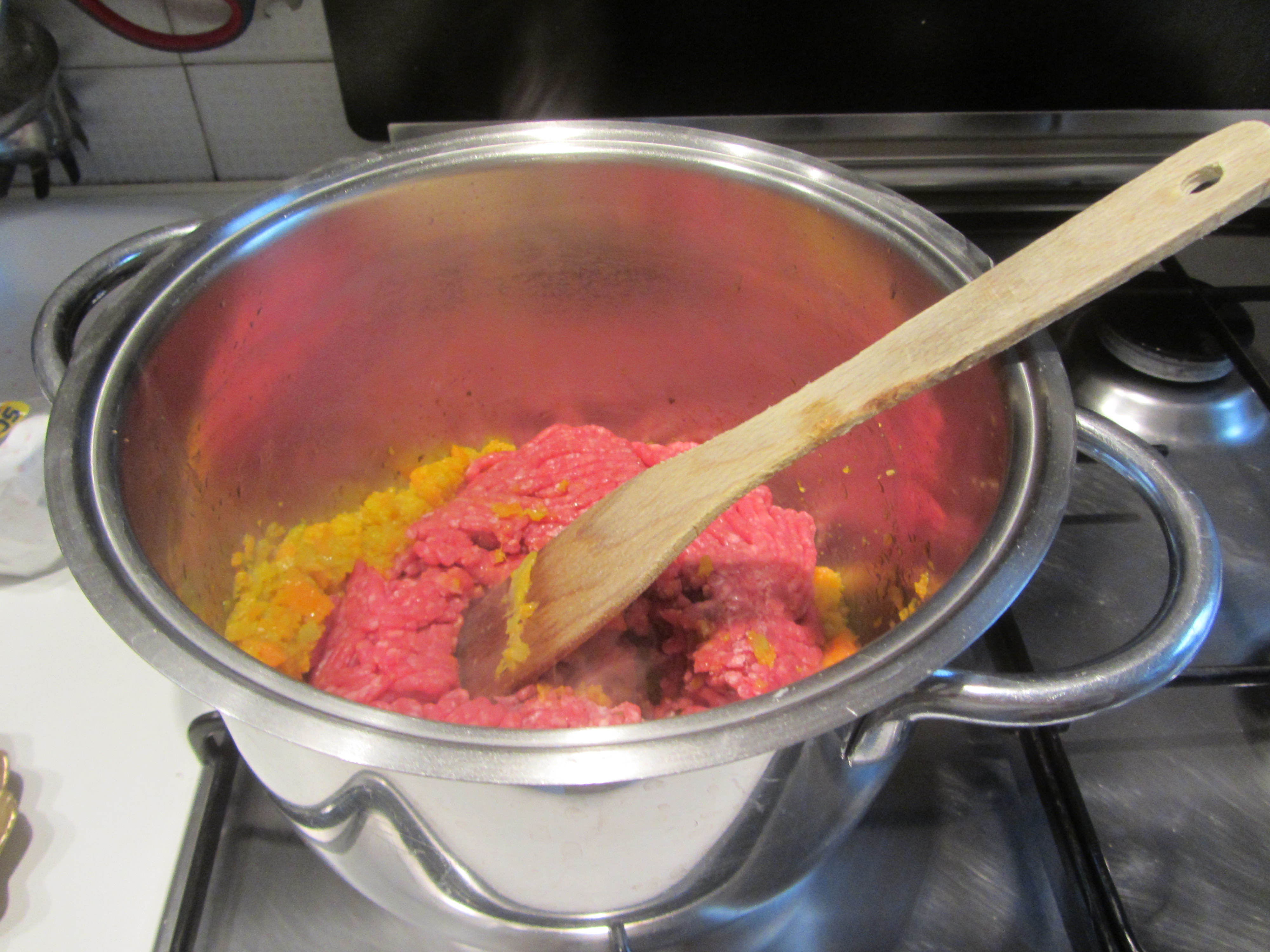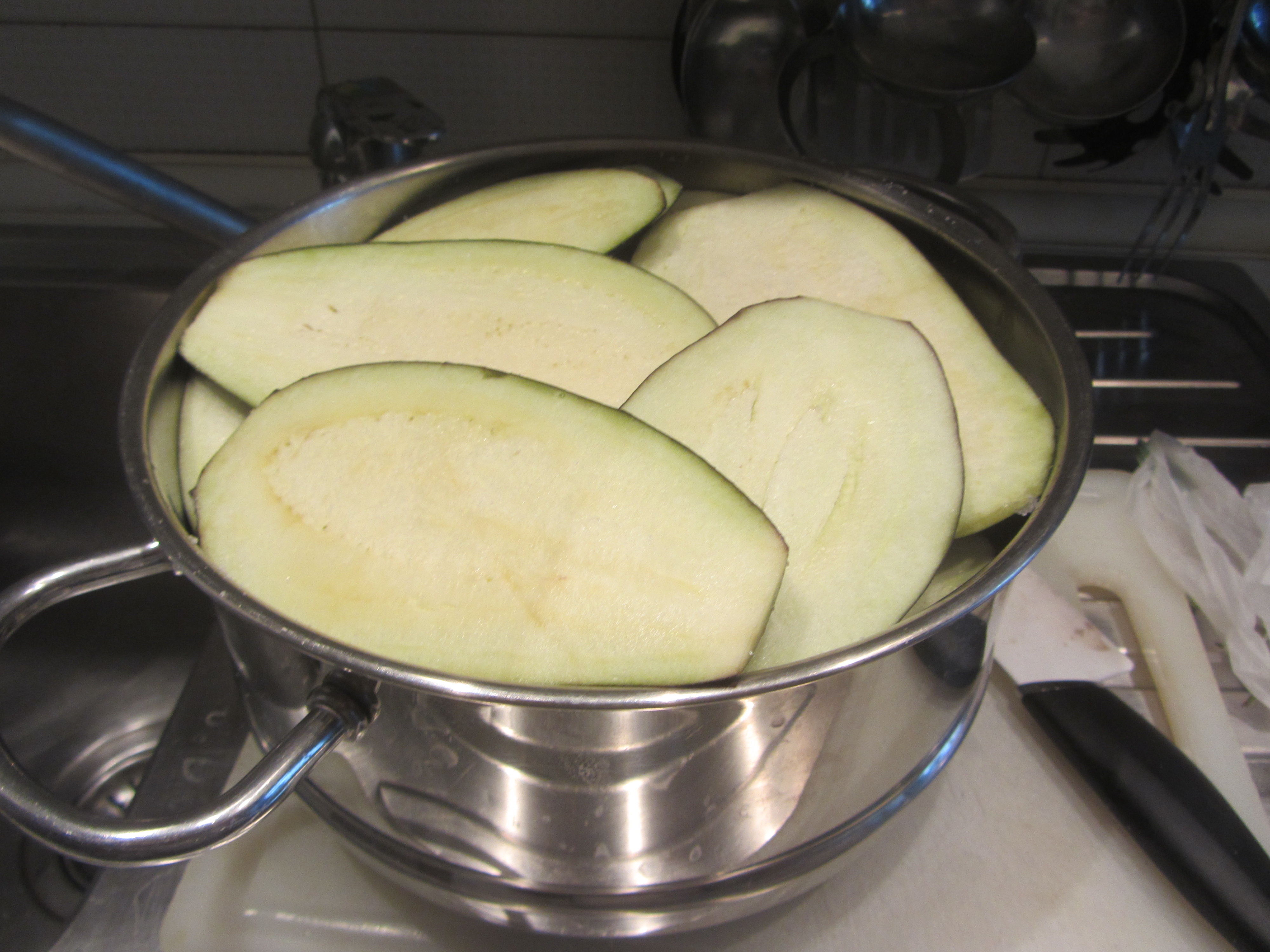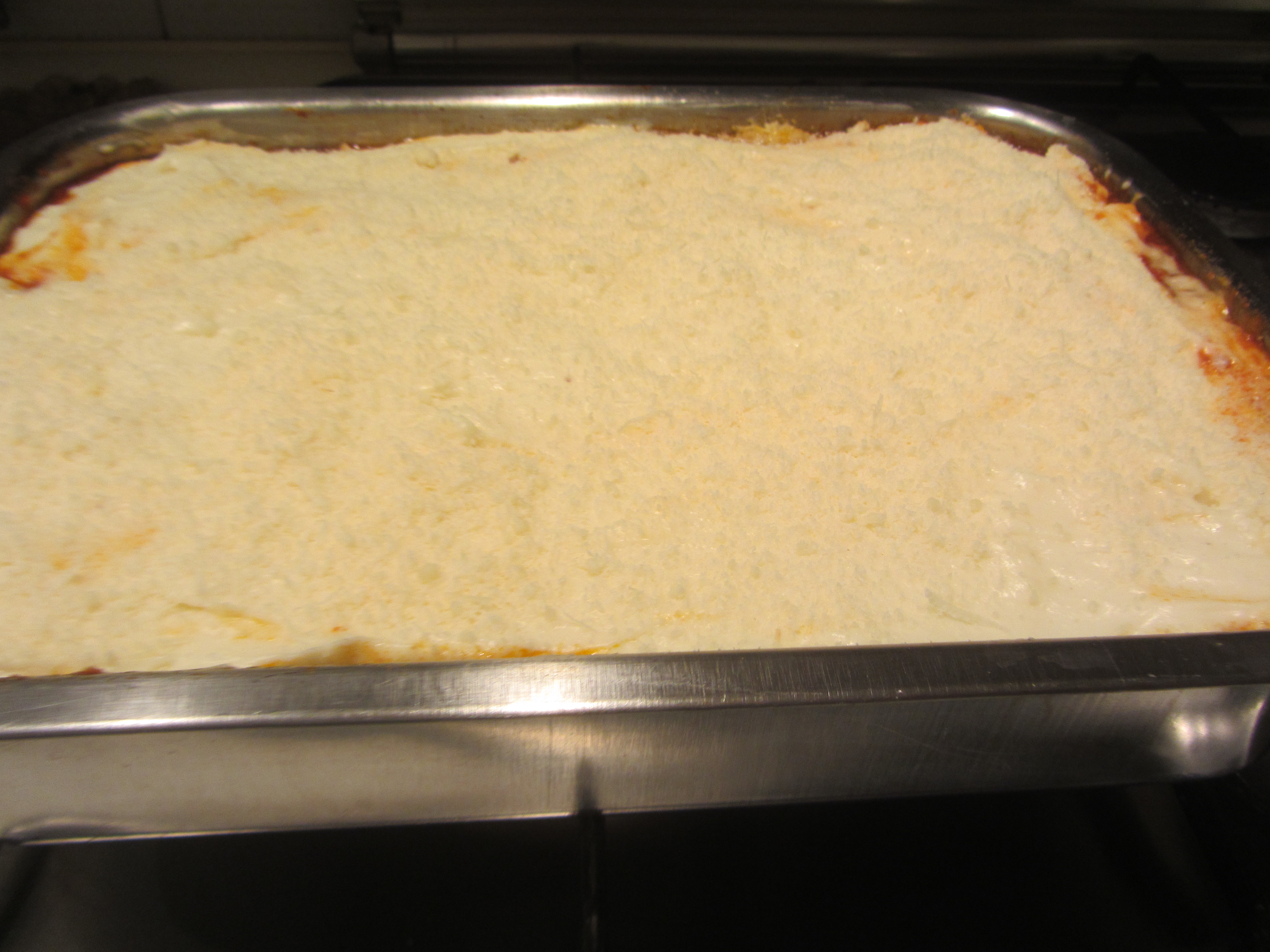 Dunque, è ovvio che si tratta di una specie di mussakà, c’è la versione turca e quella greca, libanese, ecc, gli ingredienti cambiano o si aggiungono, besciamella si, besiamella no, carne di ovino. Bon! Io il ragù l’ho fatto col manzo. Accorgimento: la besciamella deve essere sostenuta, se si usa quella troppo liquida non si sforma bene.
