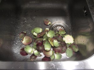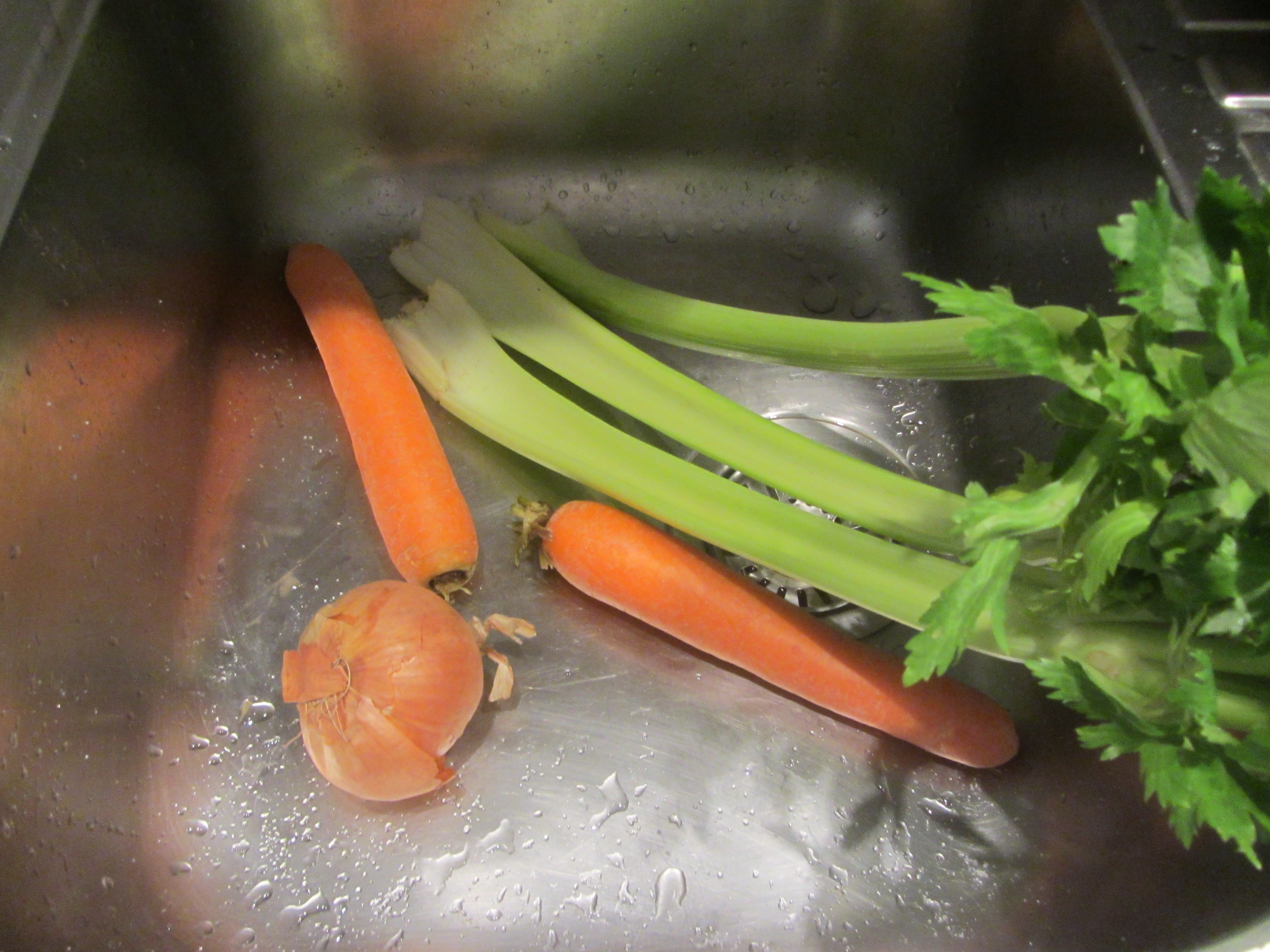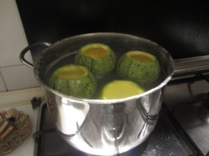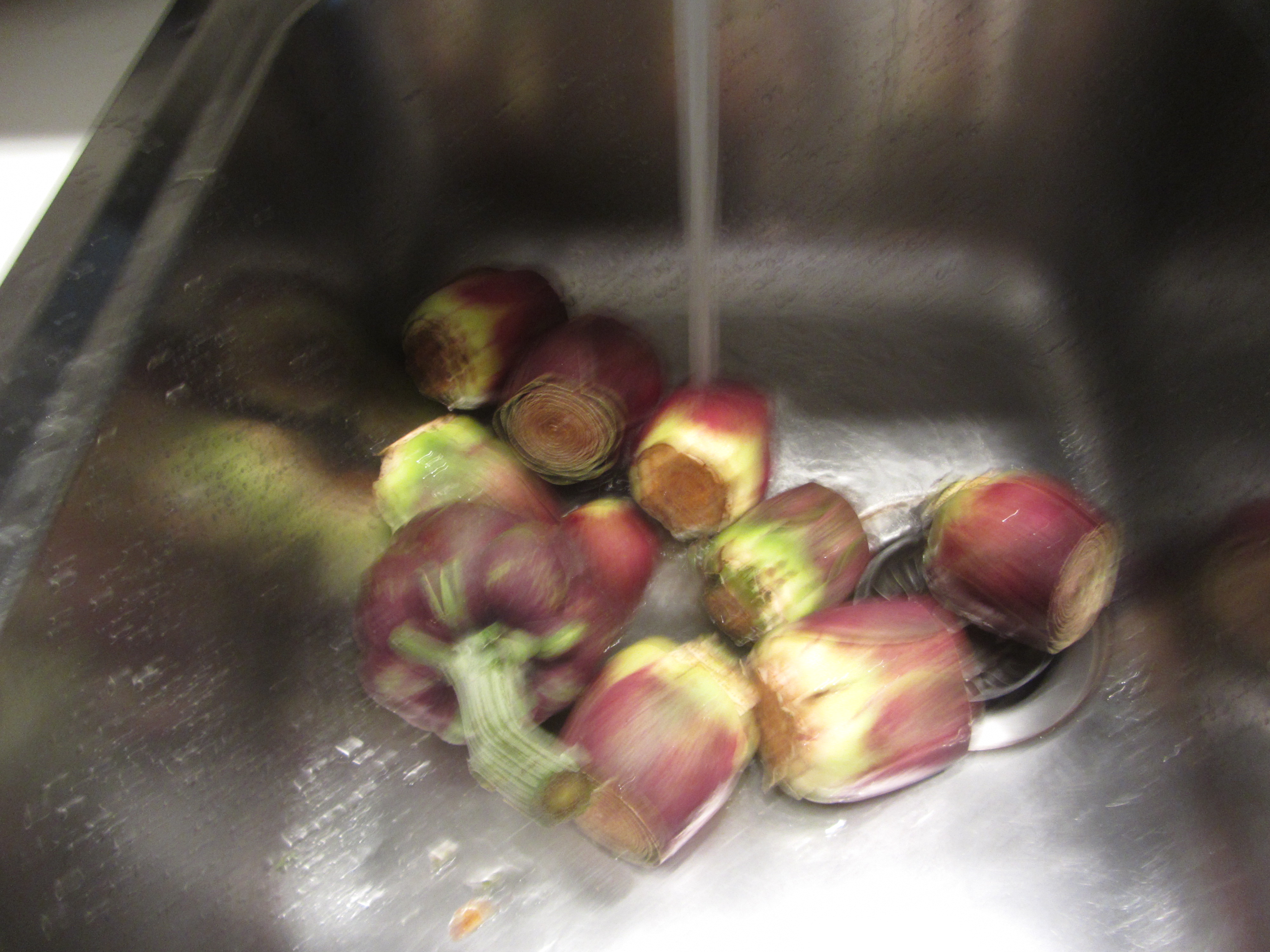 Eliminare le parti verdi ed affettare per lungo con uno spessore di mezzo centimetro.