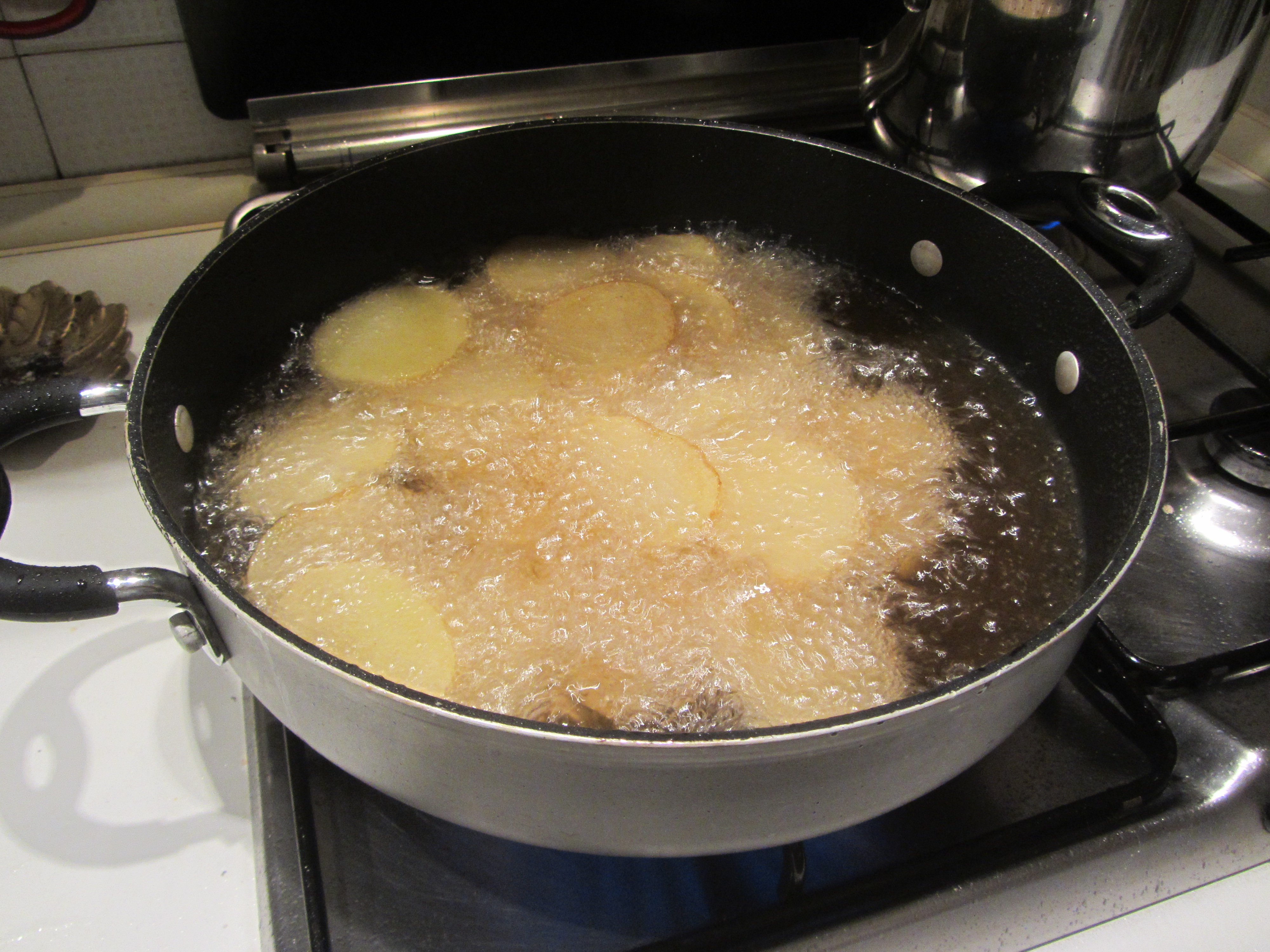 Strizzare e asciugare le melanzane e friggerle in olio di semi.