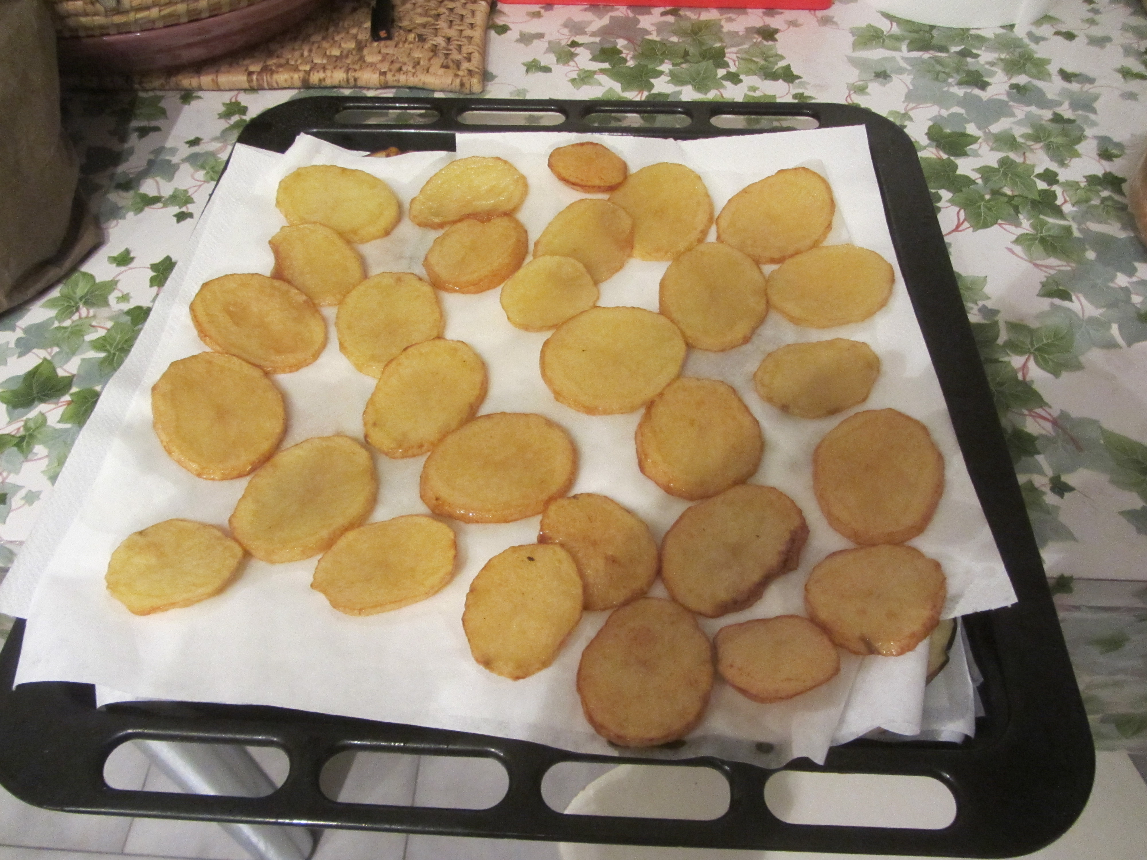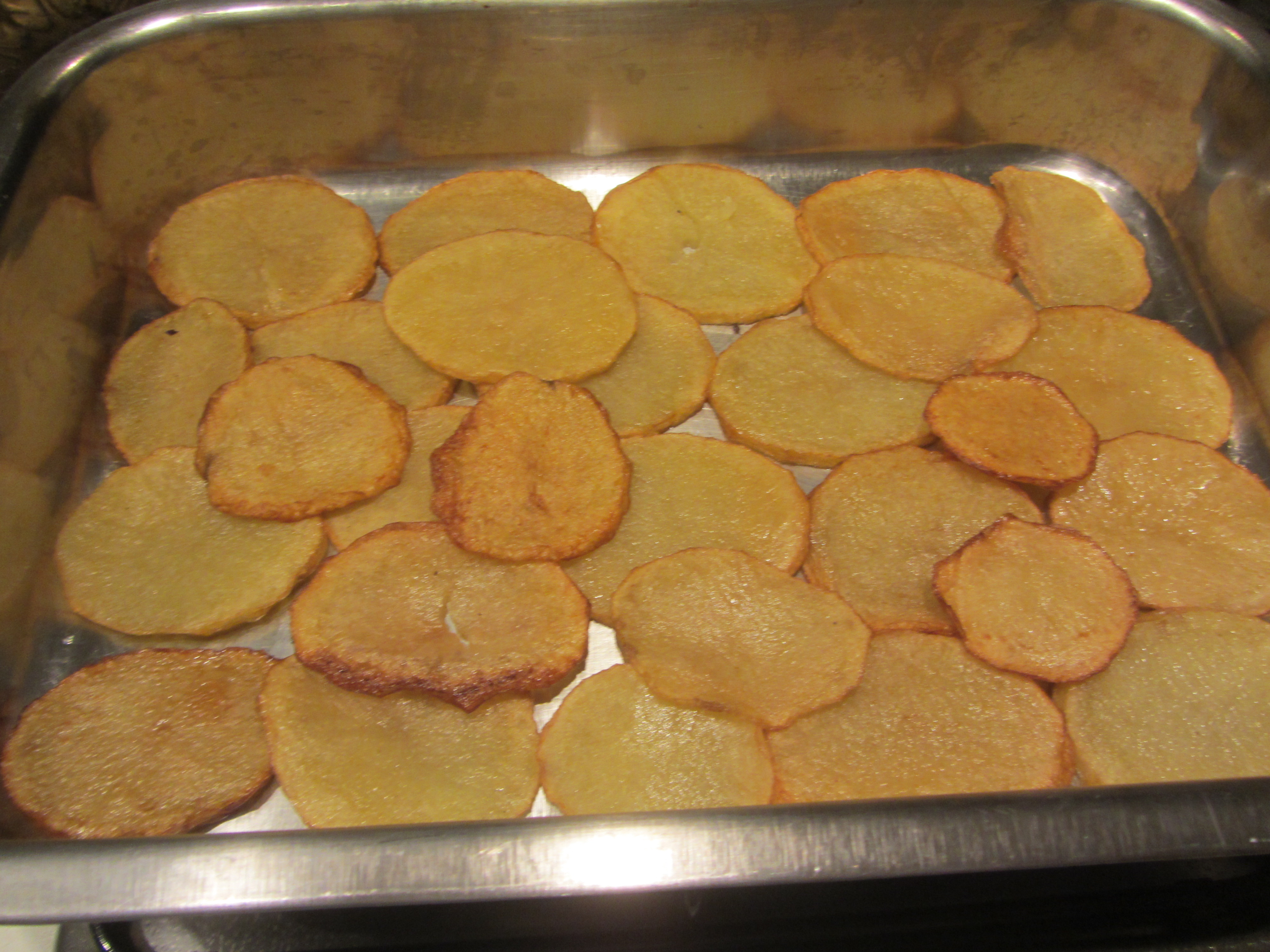 Predisporre uno strato di patate sul fondo della teglia leggermente unta con olio di oliva extravergine.