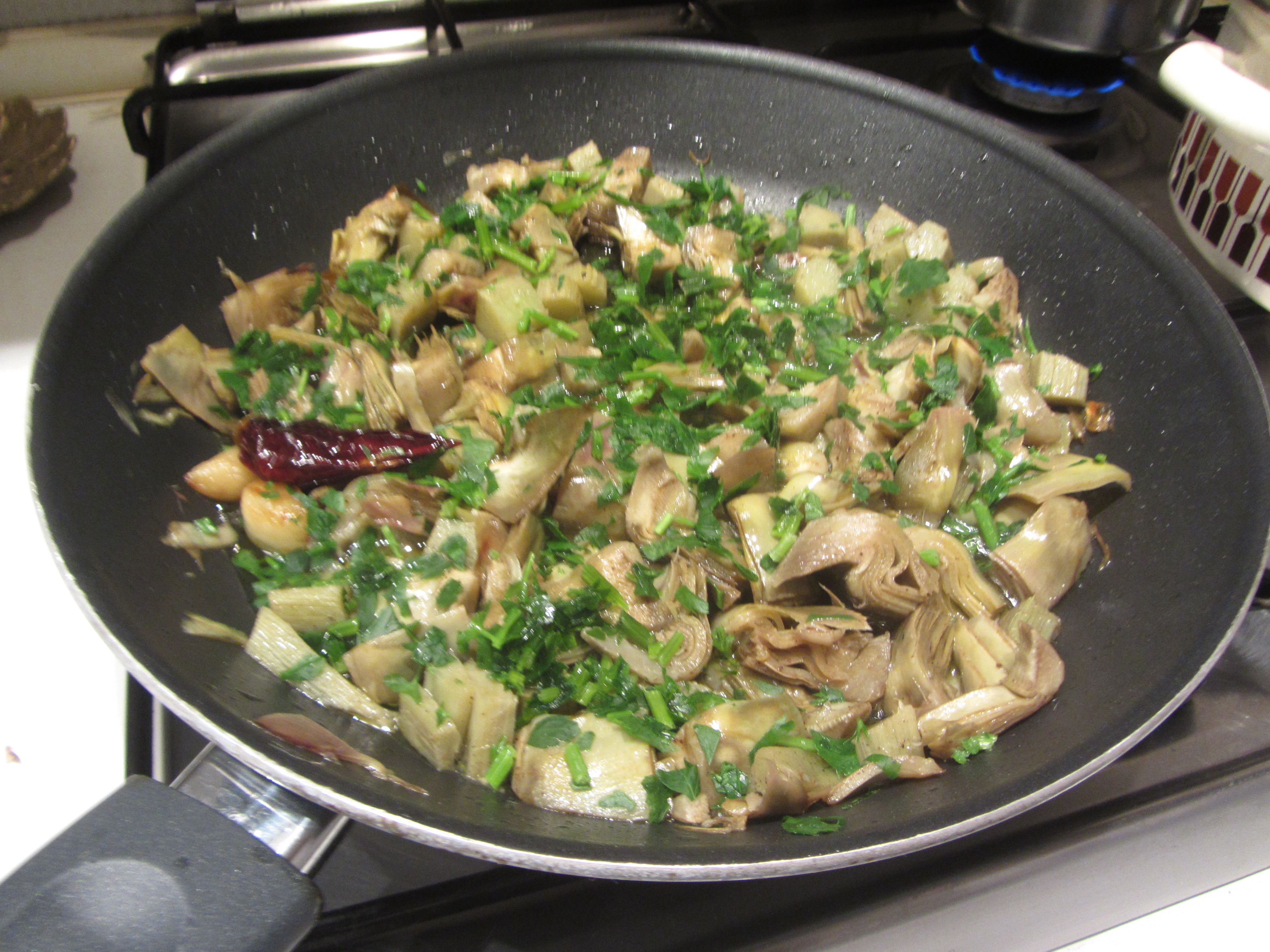 Rosolare ed aggiungere del sale, continuare sino a ad asciugare la carne dai succhi di cottura. Aggiungere pepe e cumino.