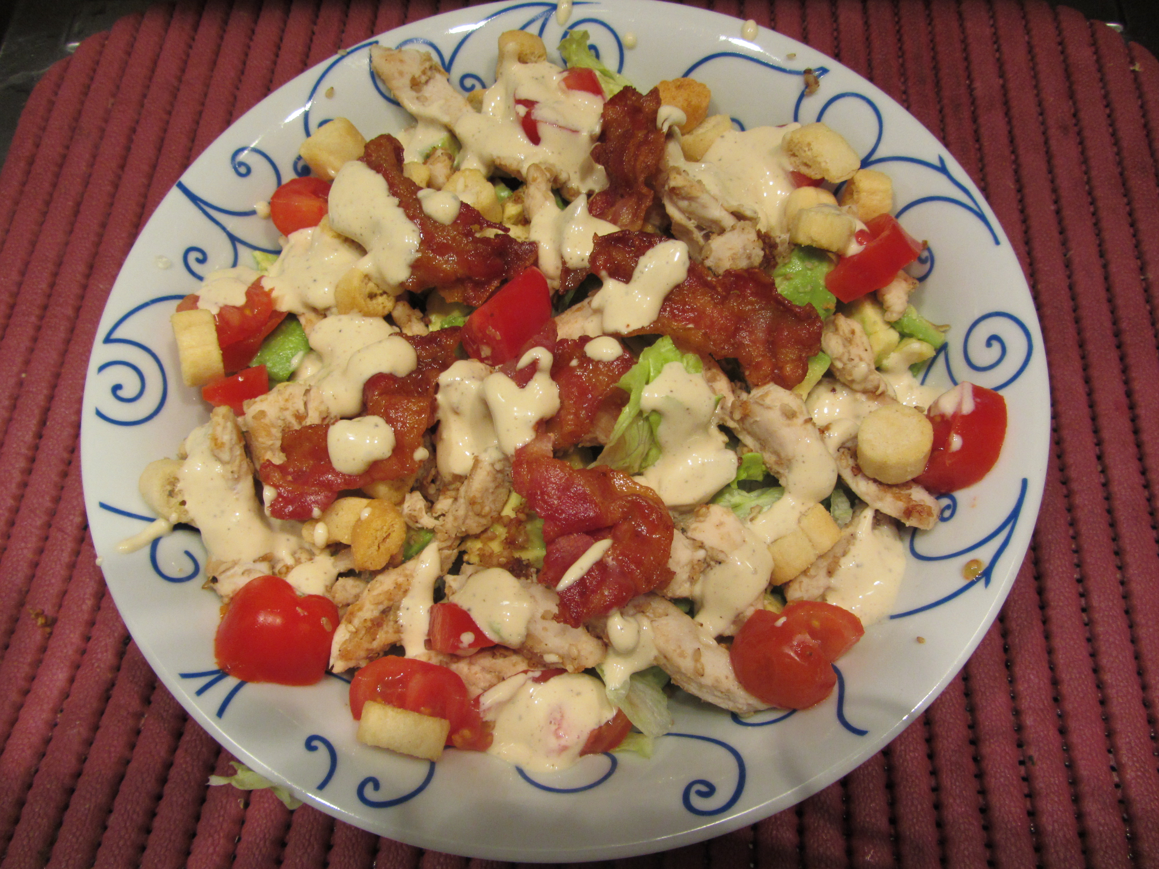 A questo punto potrete assemblate il tutto. Potete anche servire l’ insalata scomposta, nel senso che ogni commensale potrà scegliere autonomamente le dosi degli ingredienti.