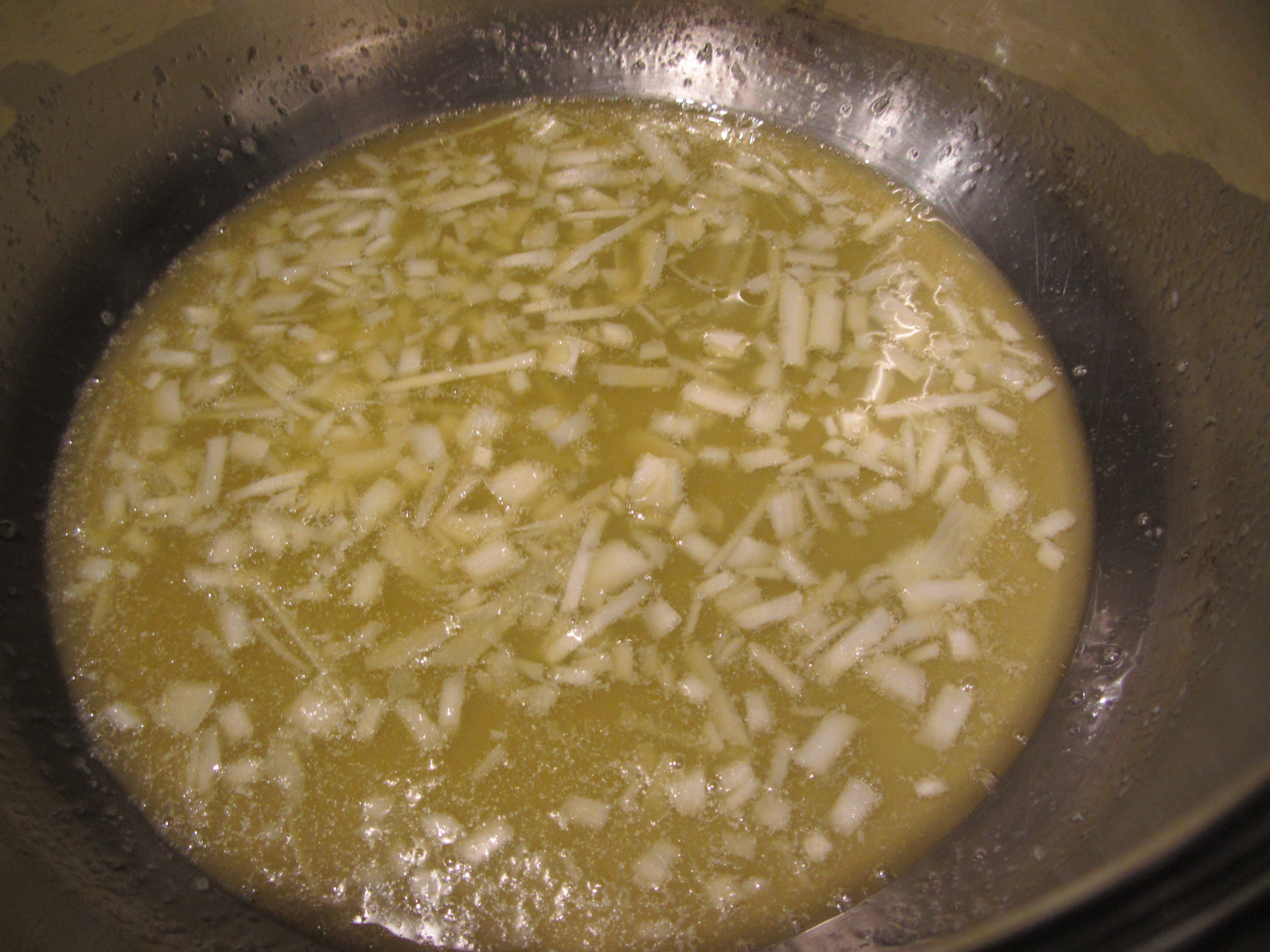 quando il burro sarà fuso aggiungete i cipollotti a pezzetti e lasciate dorare. Il fatto di utilizzare olio e burro insieme, è utile a non far scurire il burro, che utilizzato da solo tende a farlo.