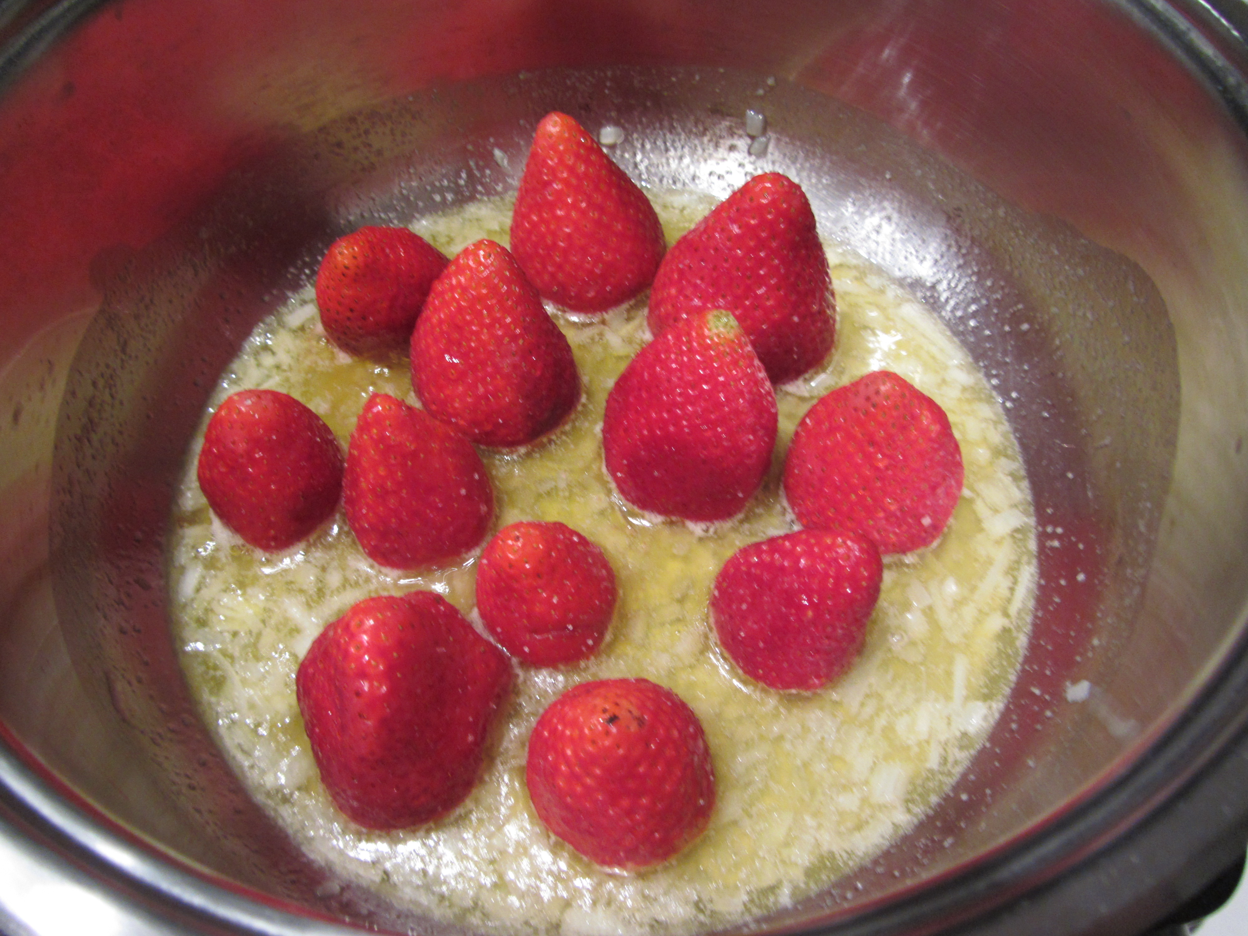 Aggiungete le fragole intere, pochissimo sale