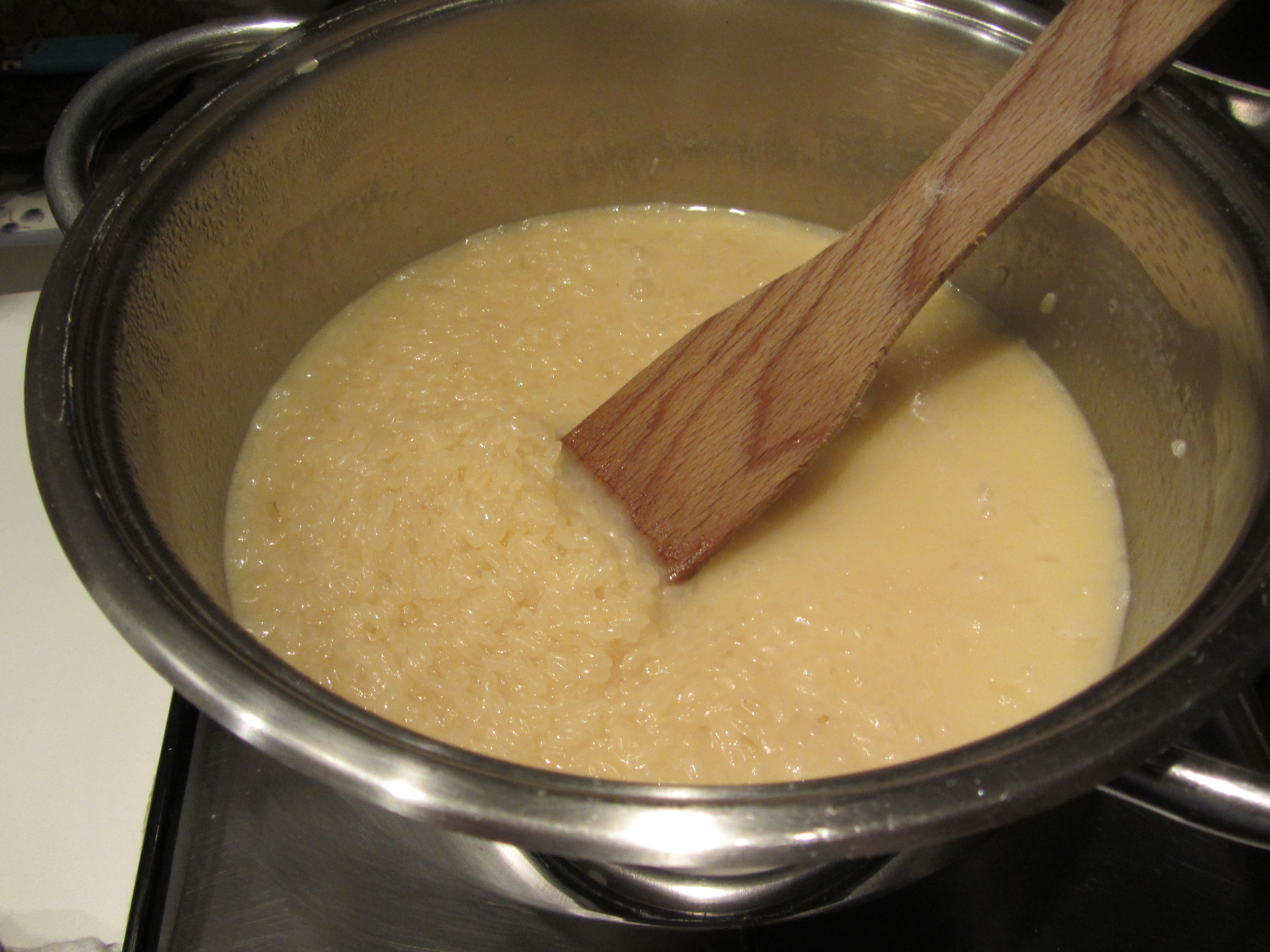 Mescolate a fiamma bassa e lasciate evaporare. Continuate aggiungendo un mestolo di brodo alla volta, ed aggiungete il successivo quando quello precedente si sarà ridotto. Questa operazione deve continuare sino a che il riso non risulti della consistenza desiderata.