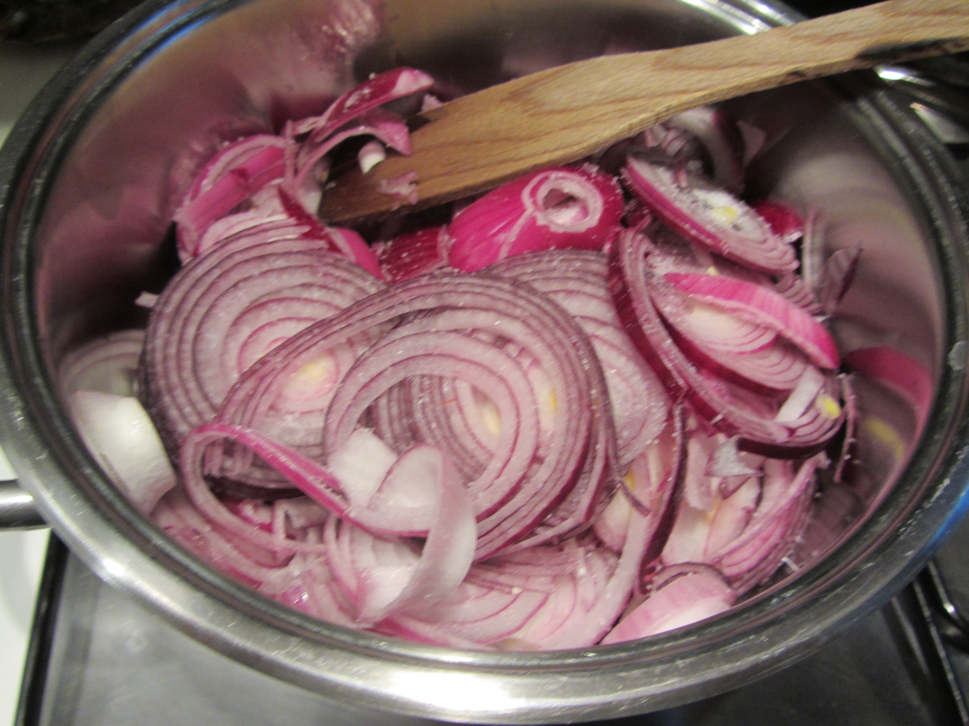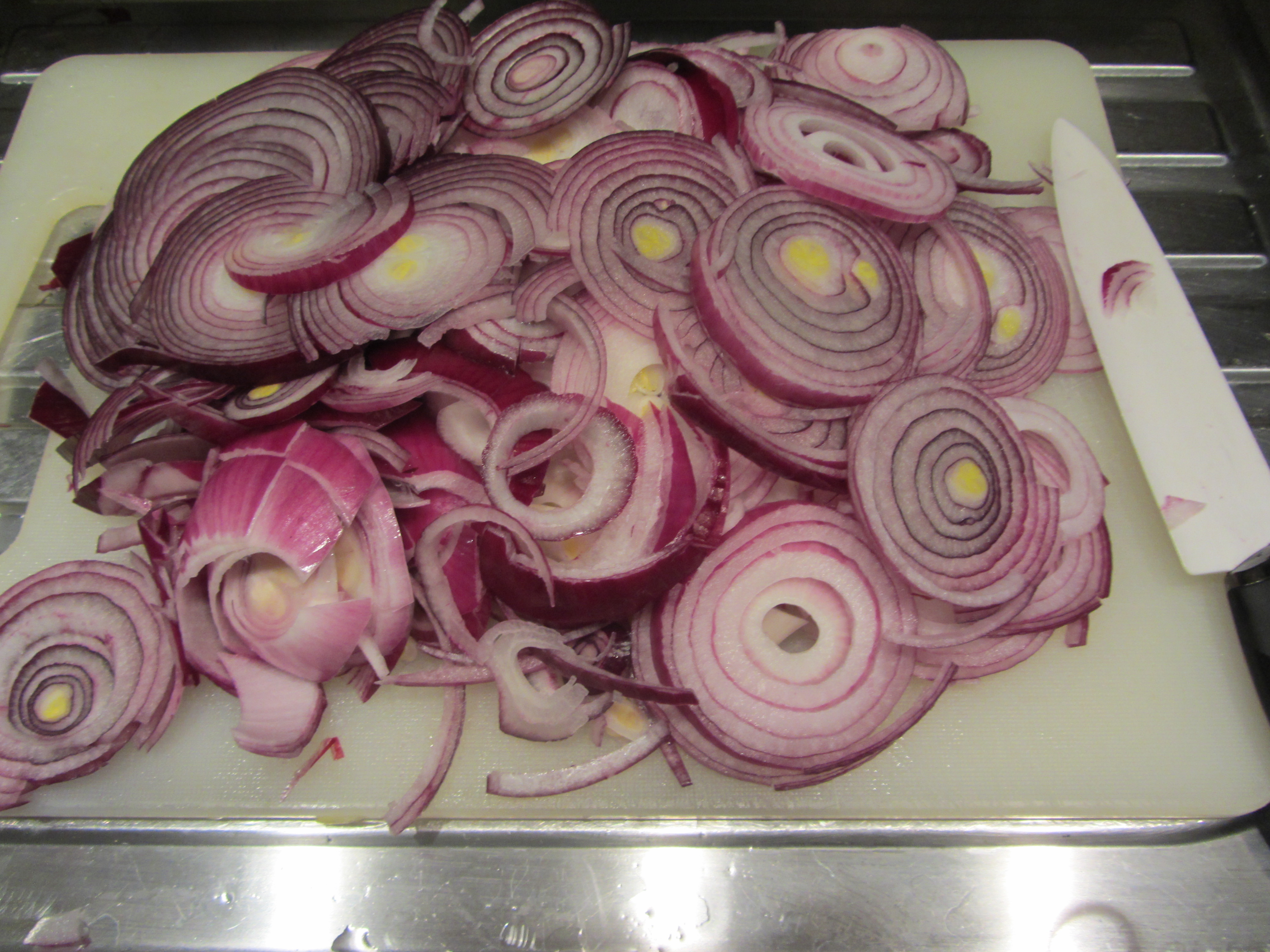 Affetttate la cipolla a mezzaluna.