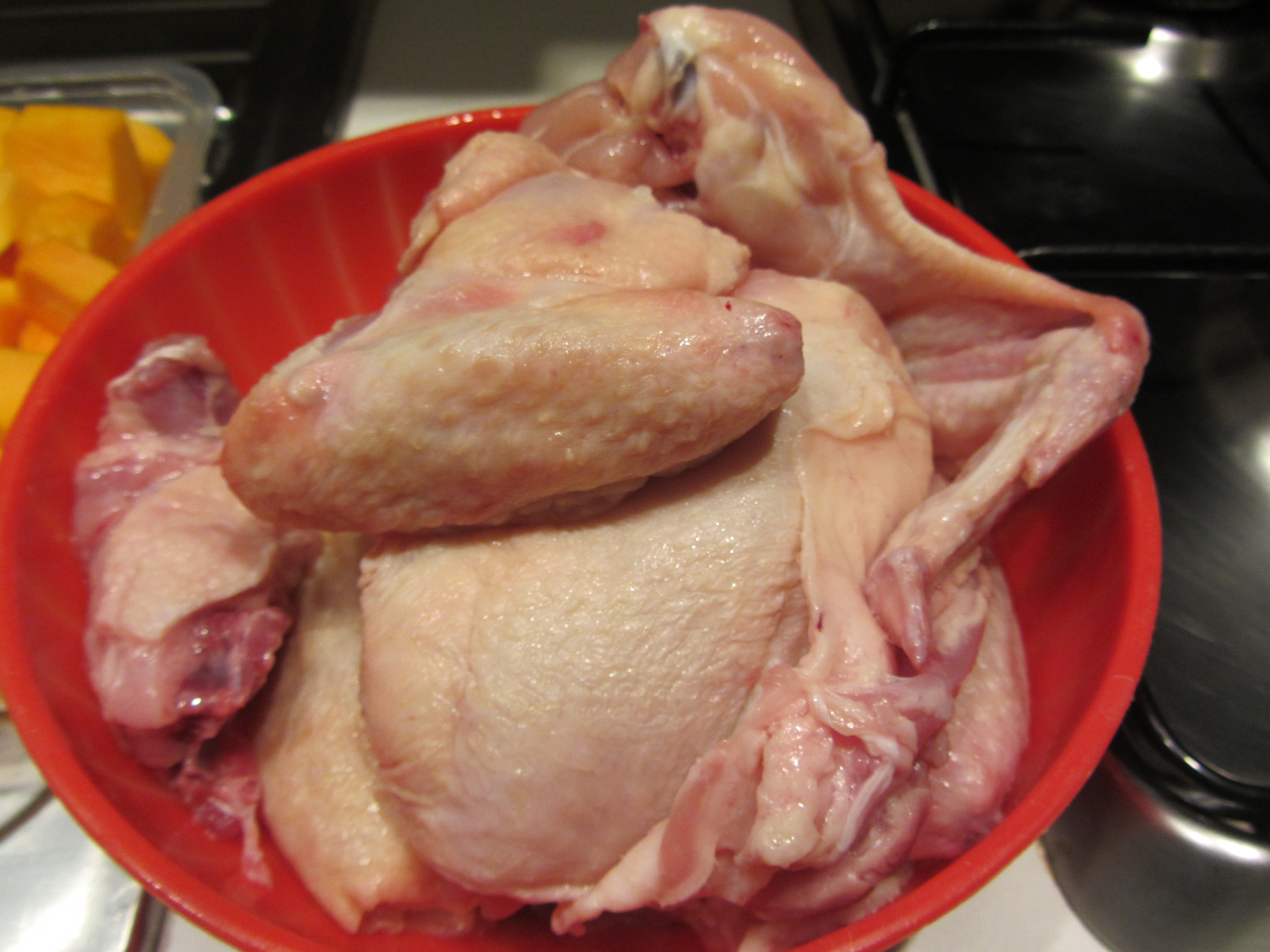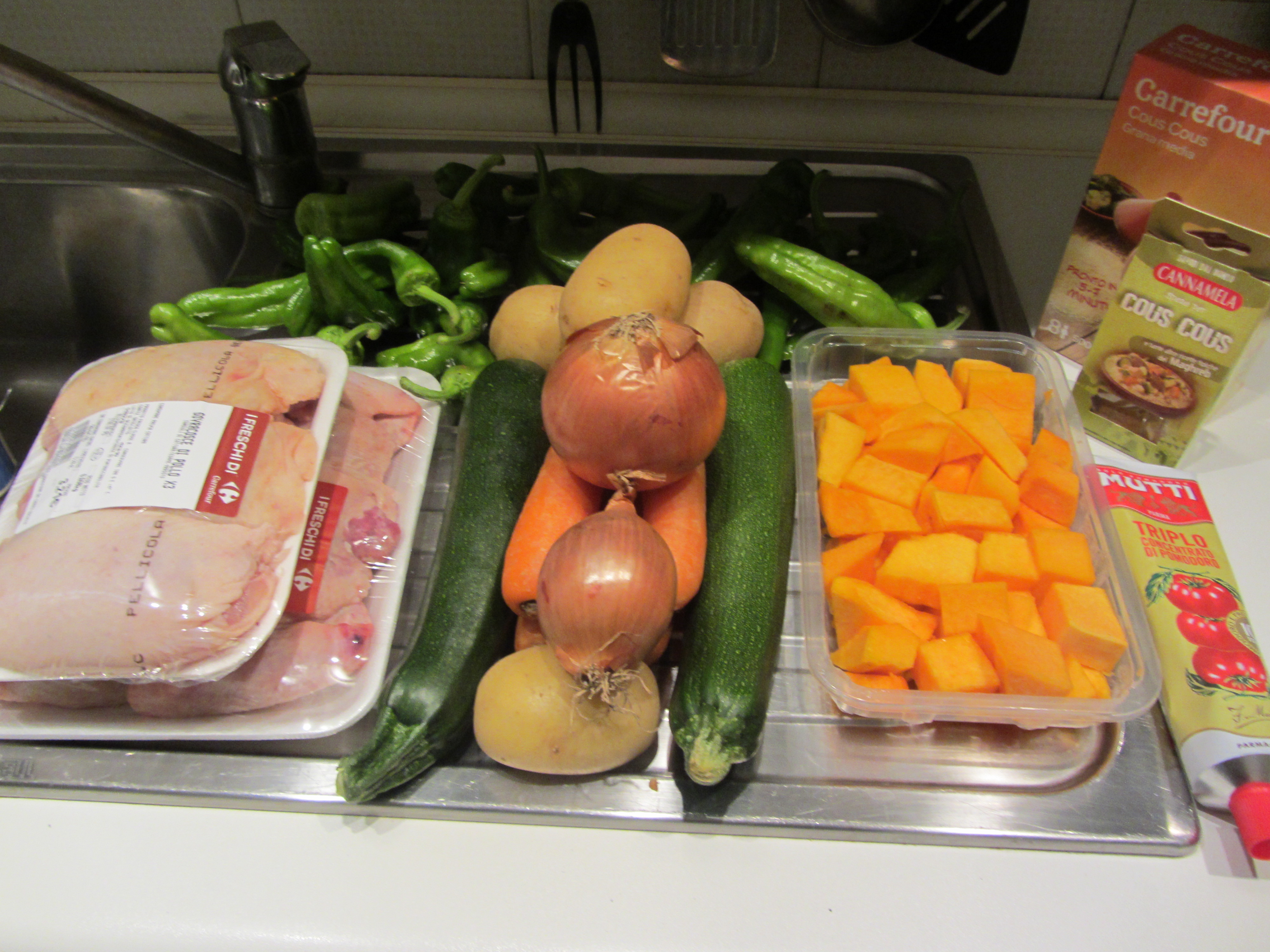 In questo caso ho dovuto utilizzare un’ alternativa all’agnello, non disponibile: il pollo, sovraccosce e ali.
