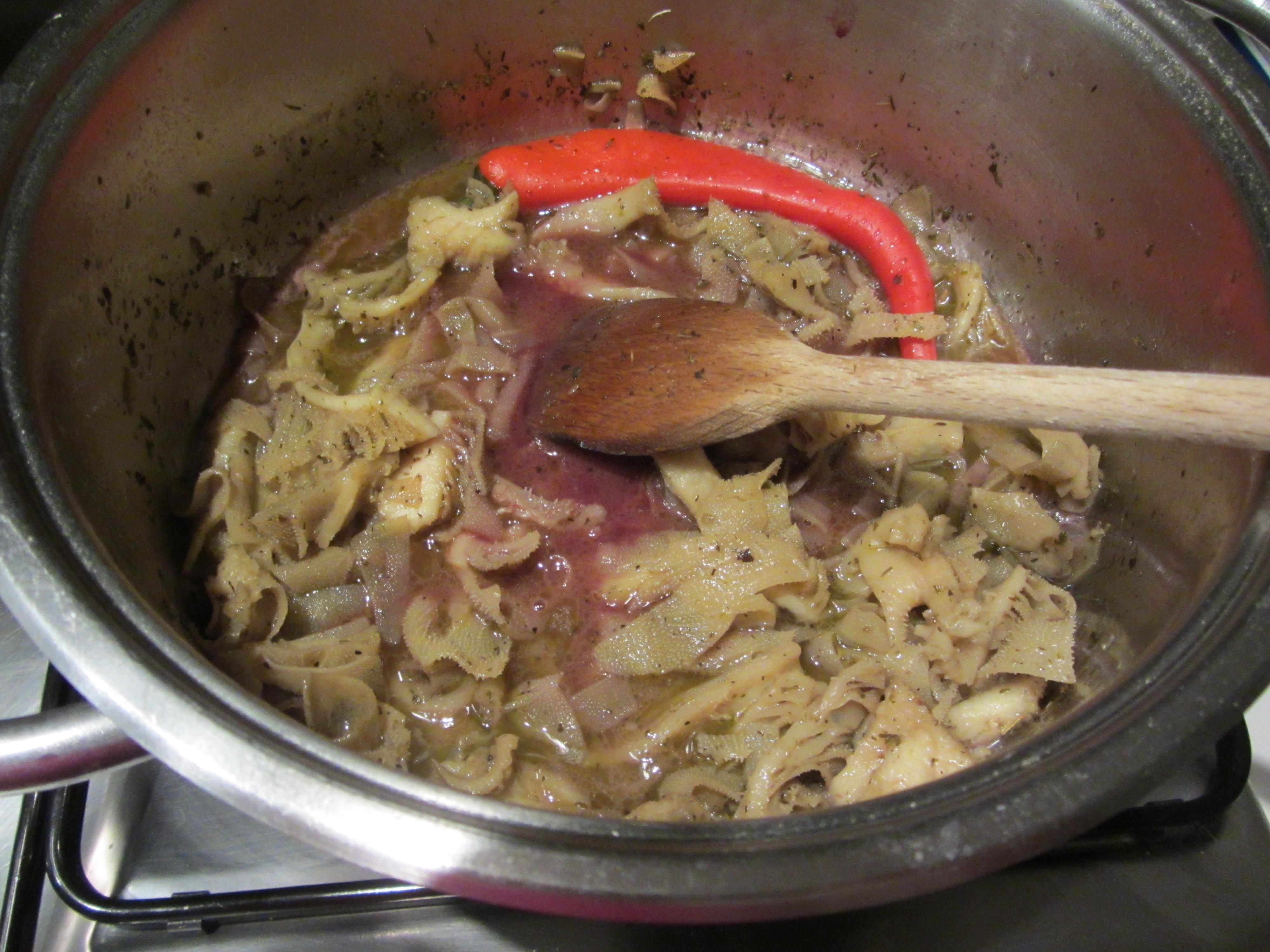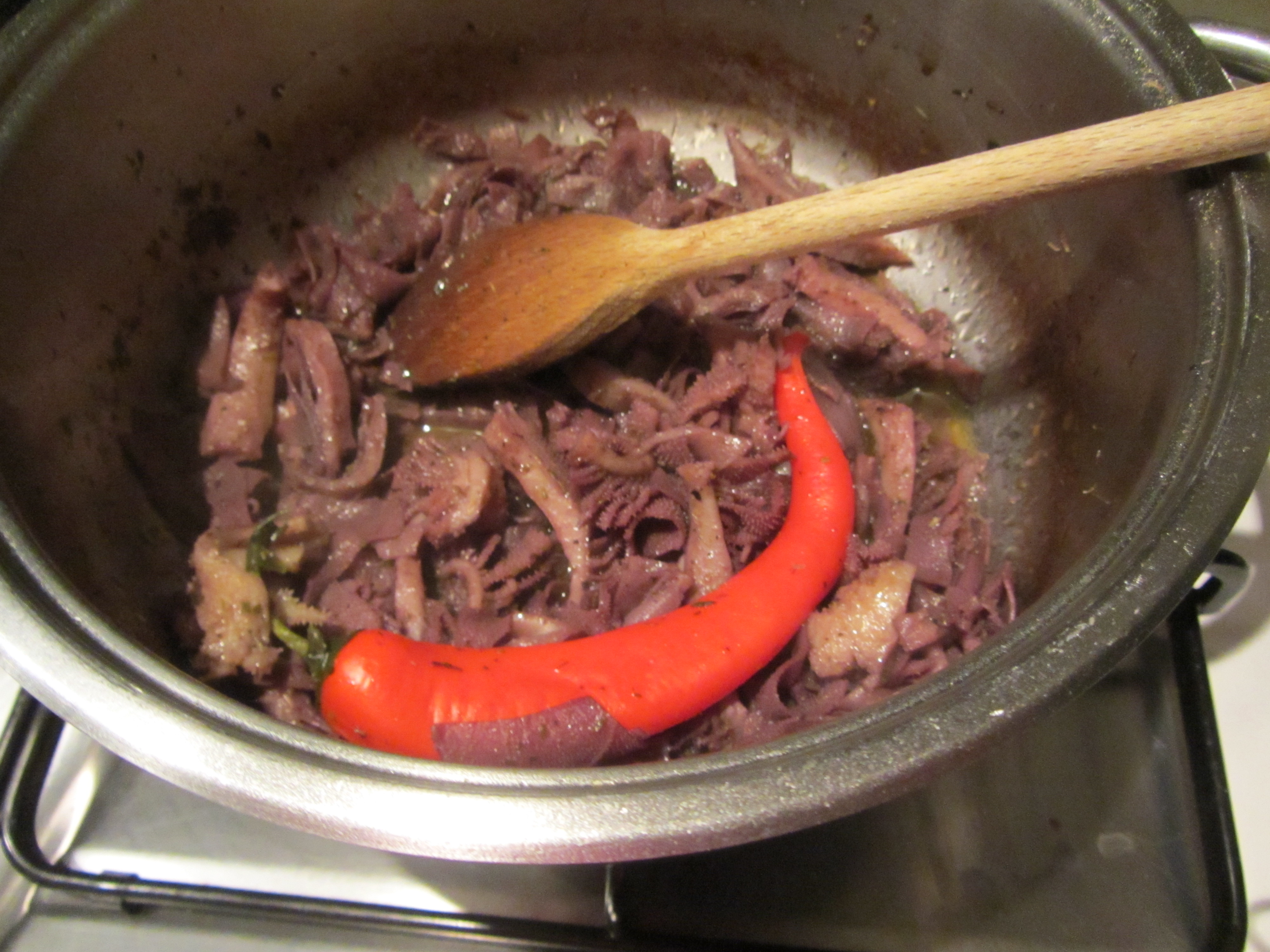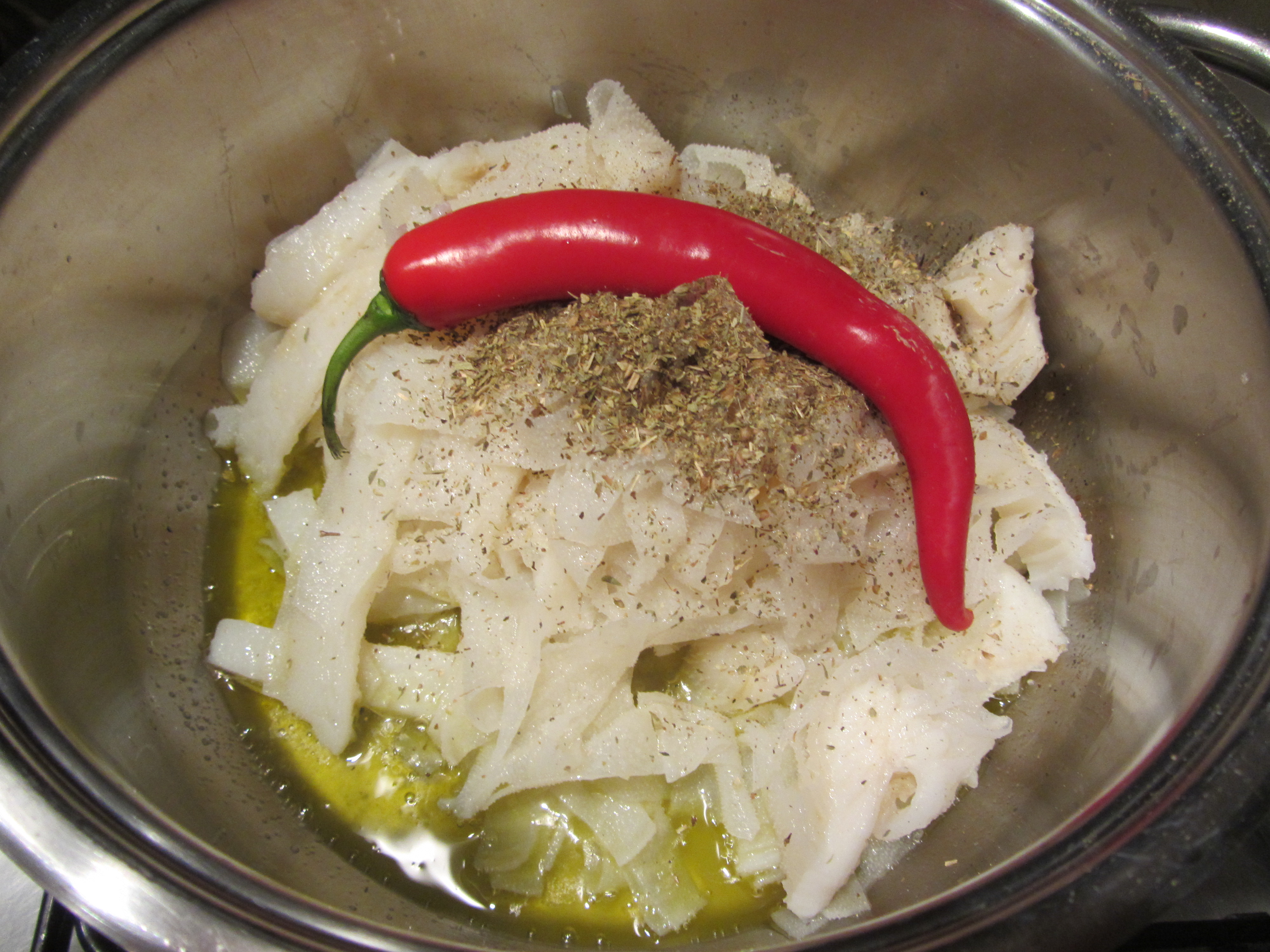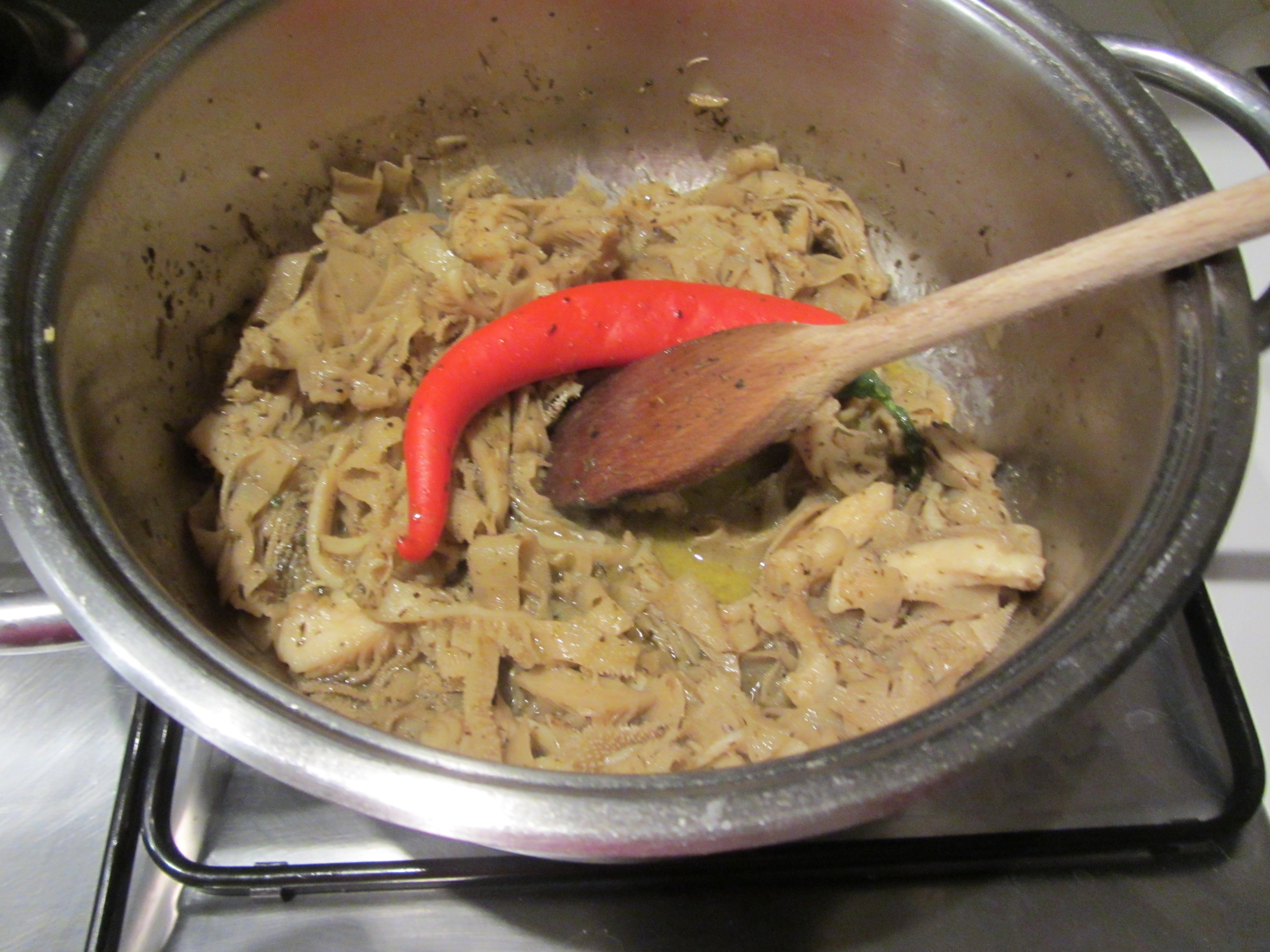 Porre la trippa nella casseruola con sale, origano e peperoncino.