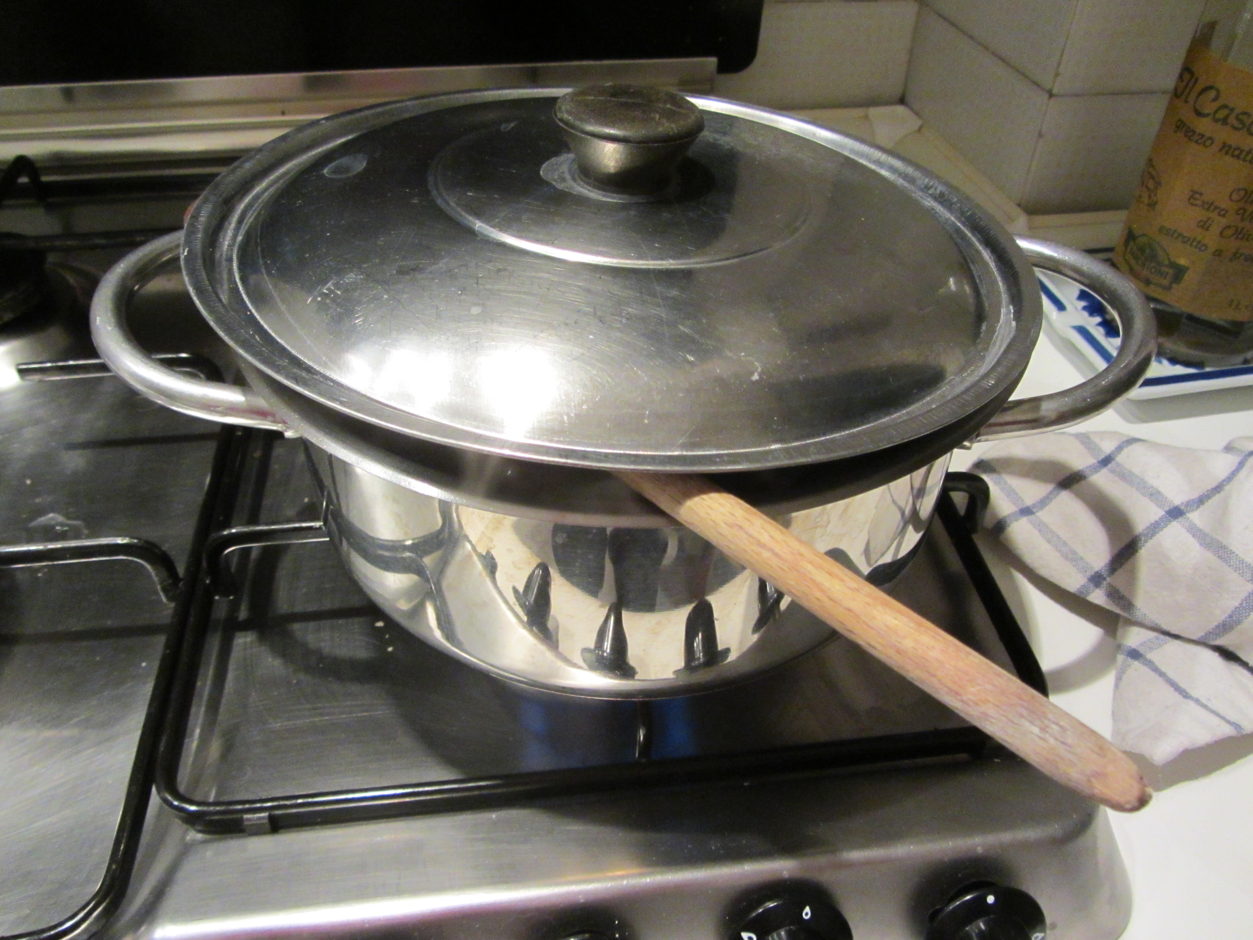 Portare a bollore poi, abbassare la fiamma, e cuocere a fiamma bassa con pentola semicoperta.