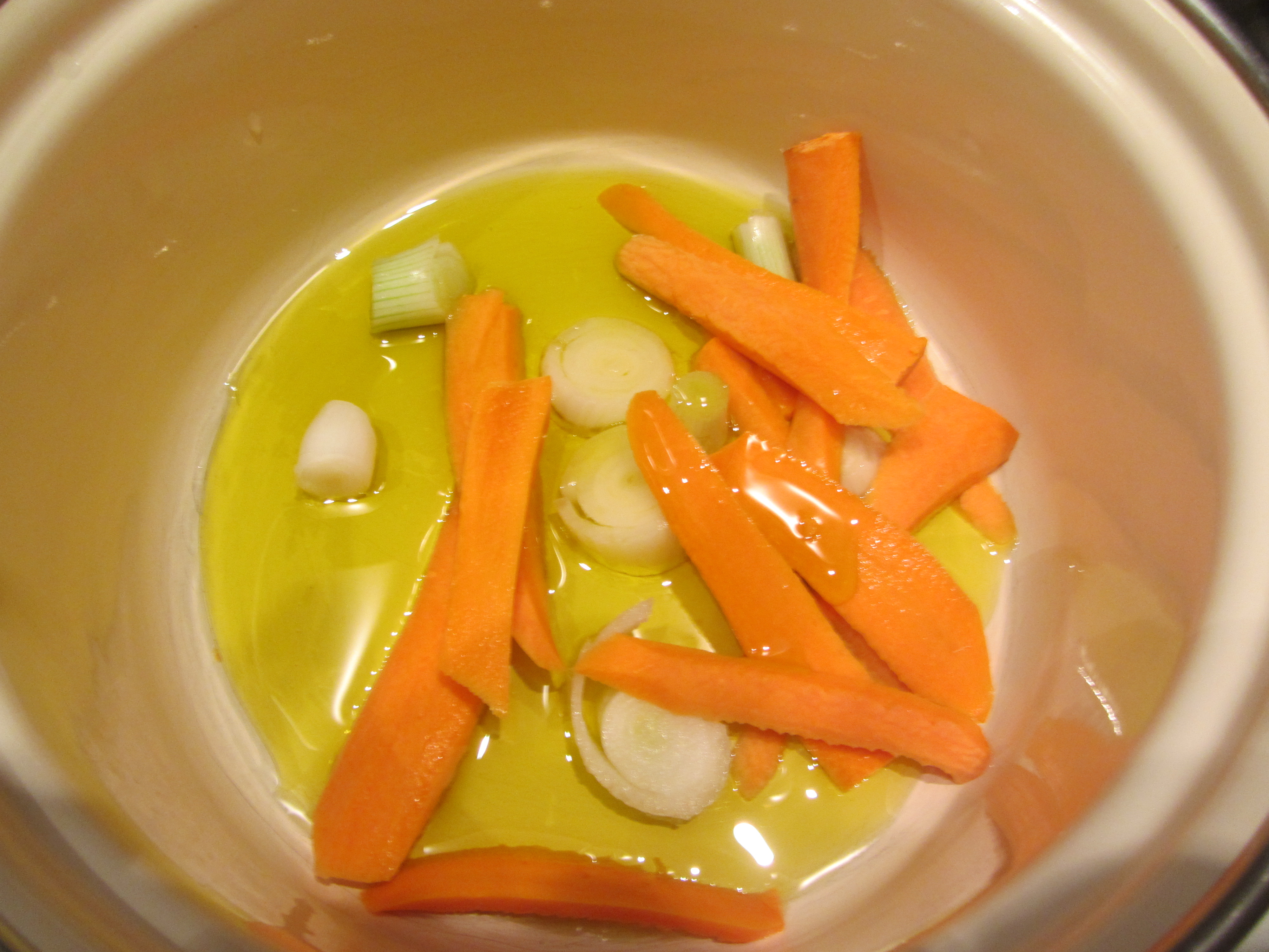 Fate dorare in olio cipollotto e carota.