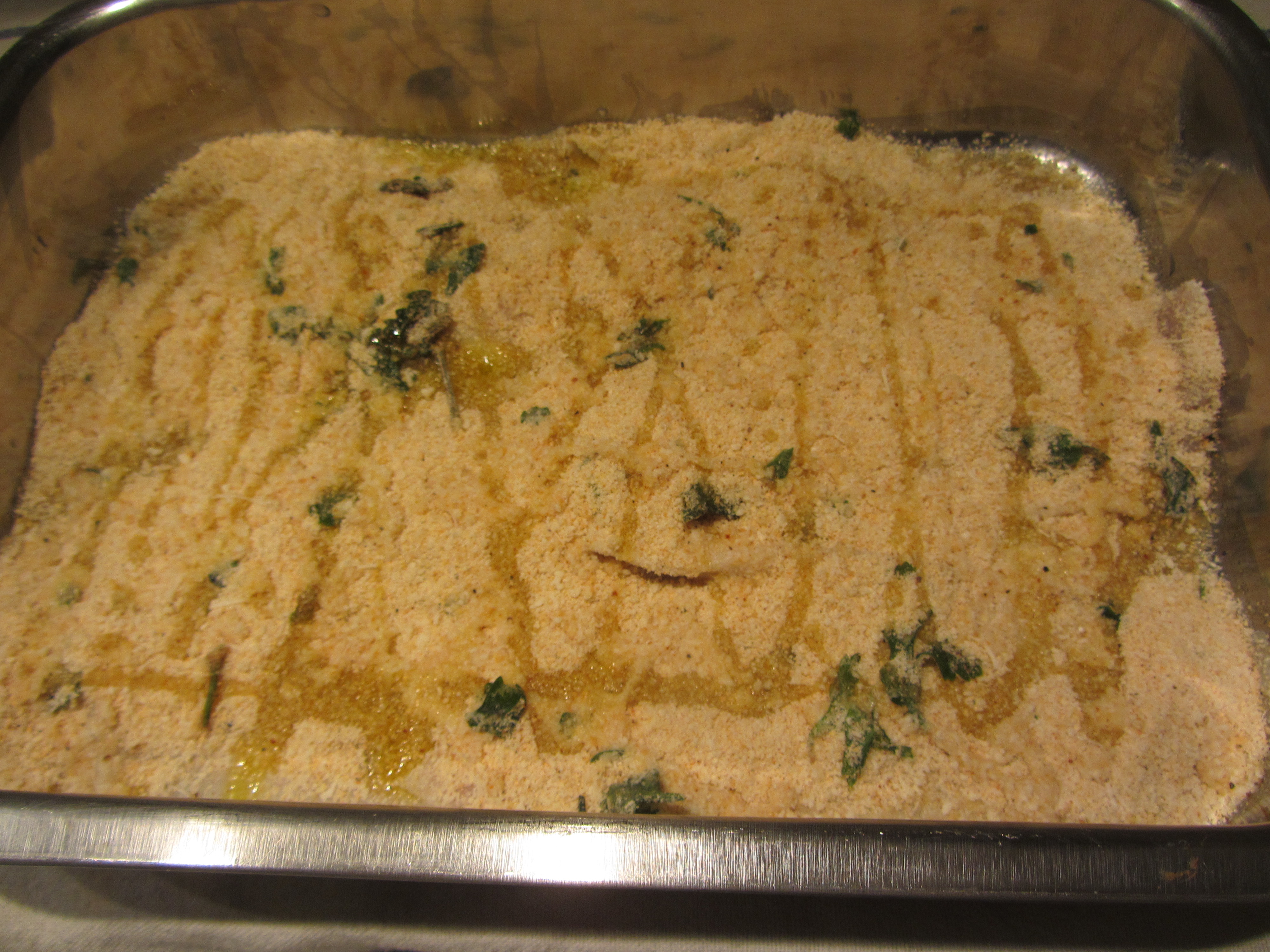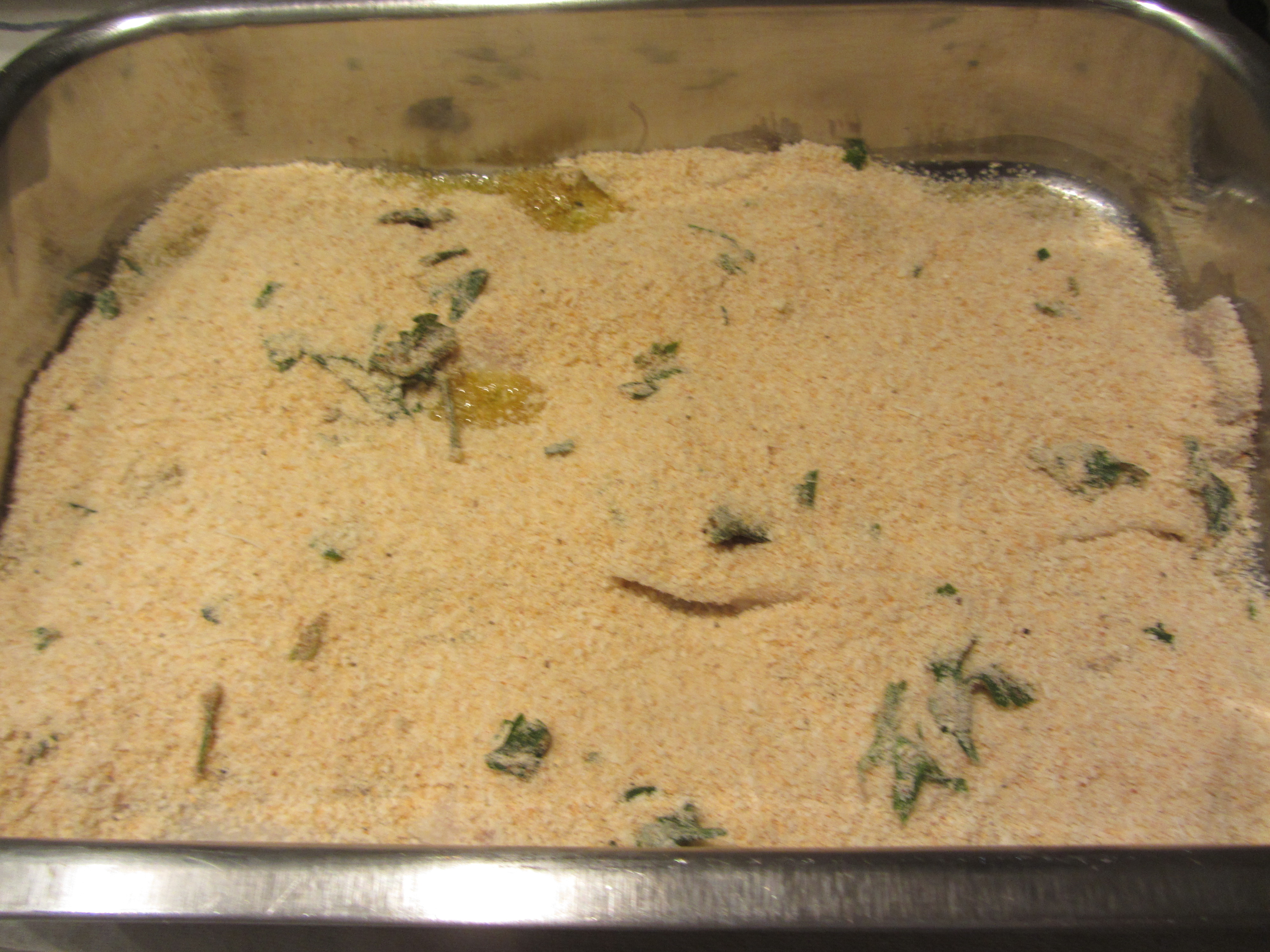 In un piatto mettete il pangrattato, il pecorino, il parmigiano, la paprika dolce, il pepe nero, poco aglio in polvere, poco sale e prezzemolo.