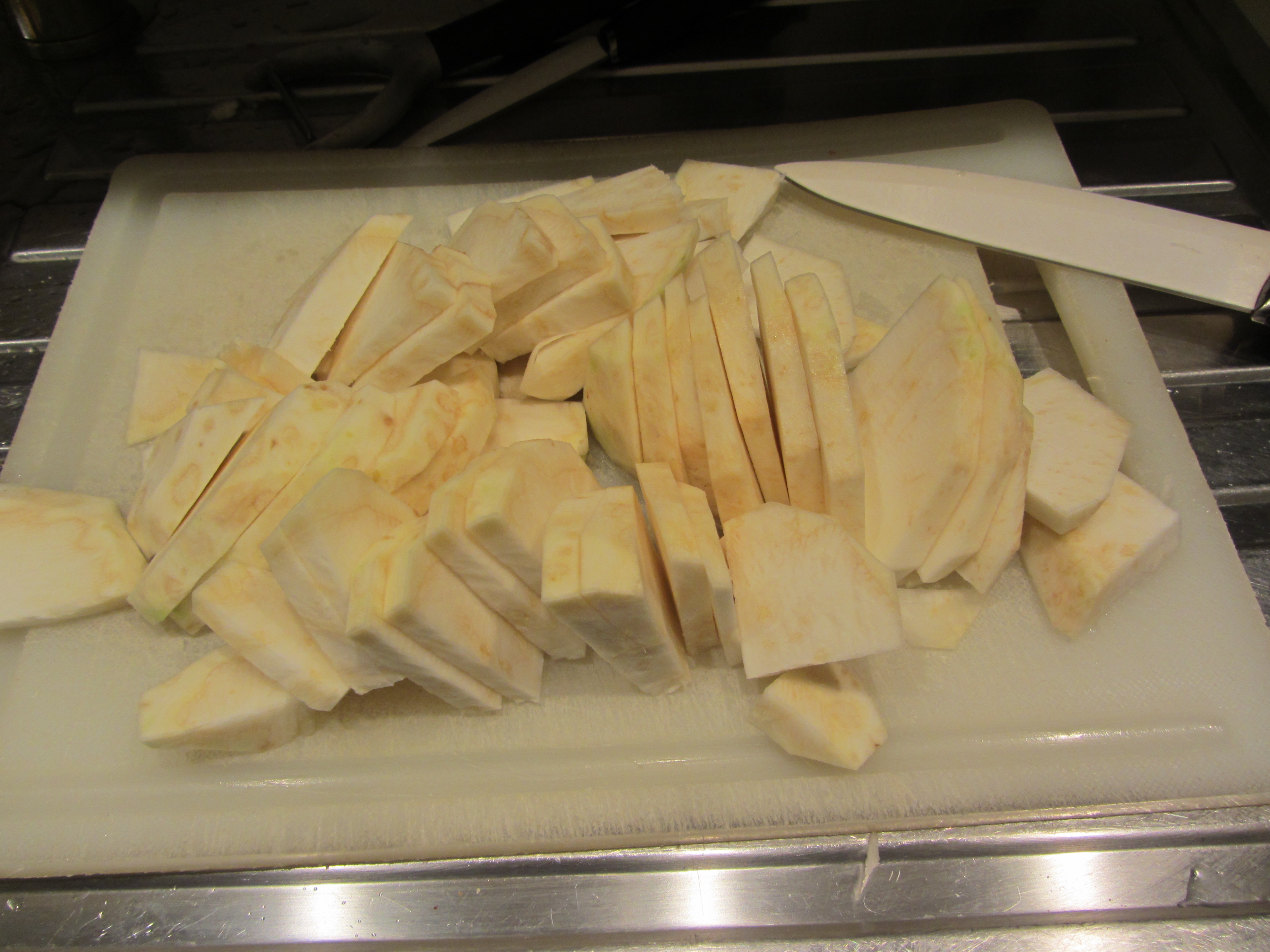 Affettare tiepida mediante l’ausilio di un coltello molto affilato.
