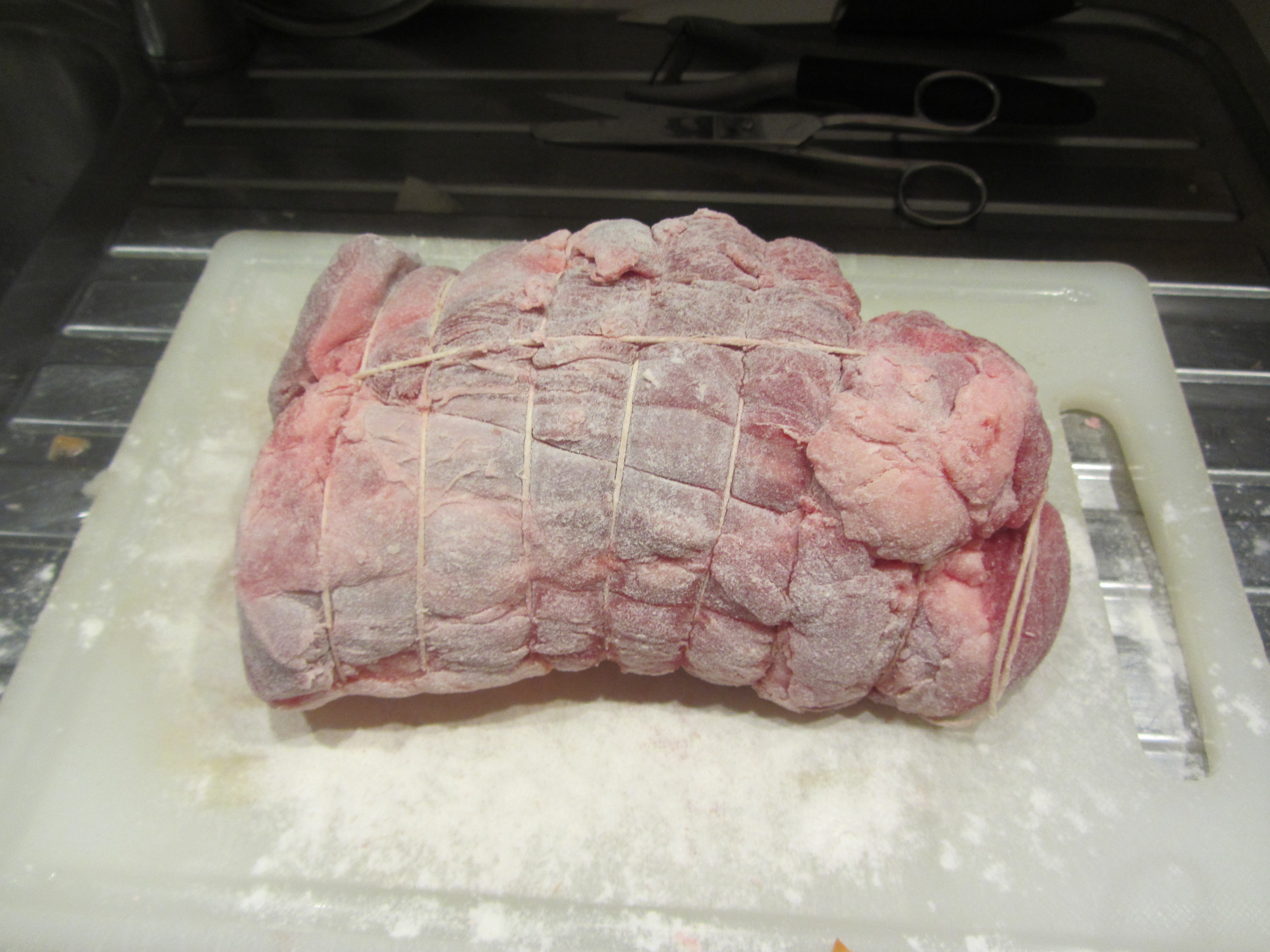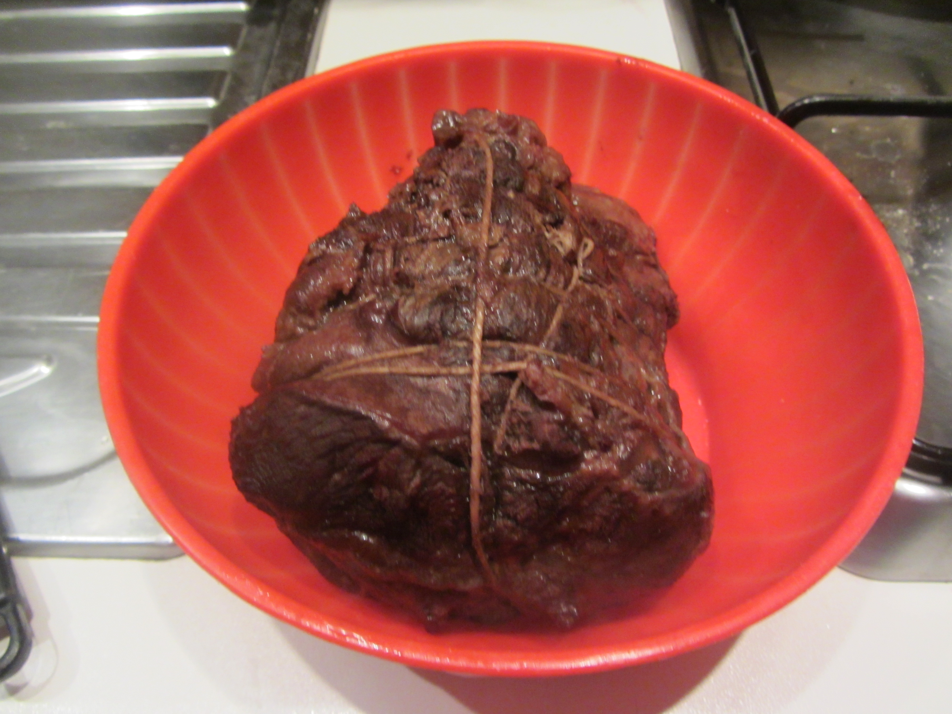Con l’ausilio di spago da cucina creare un sostegno esterno alla carne affinché rimanga in forma.