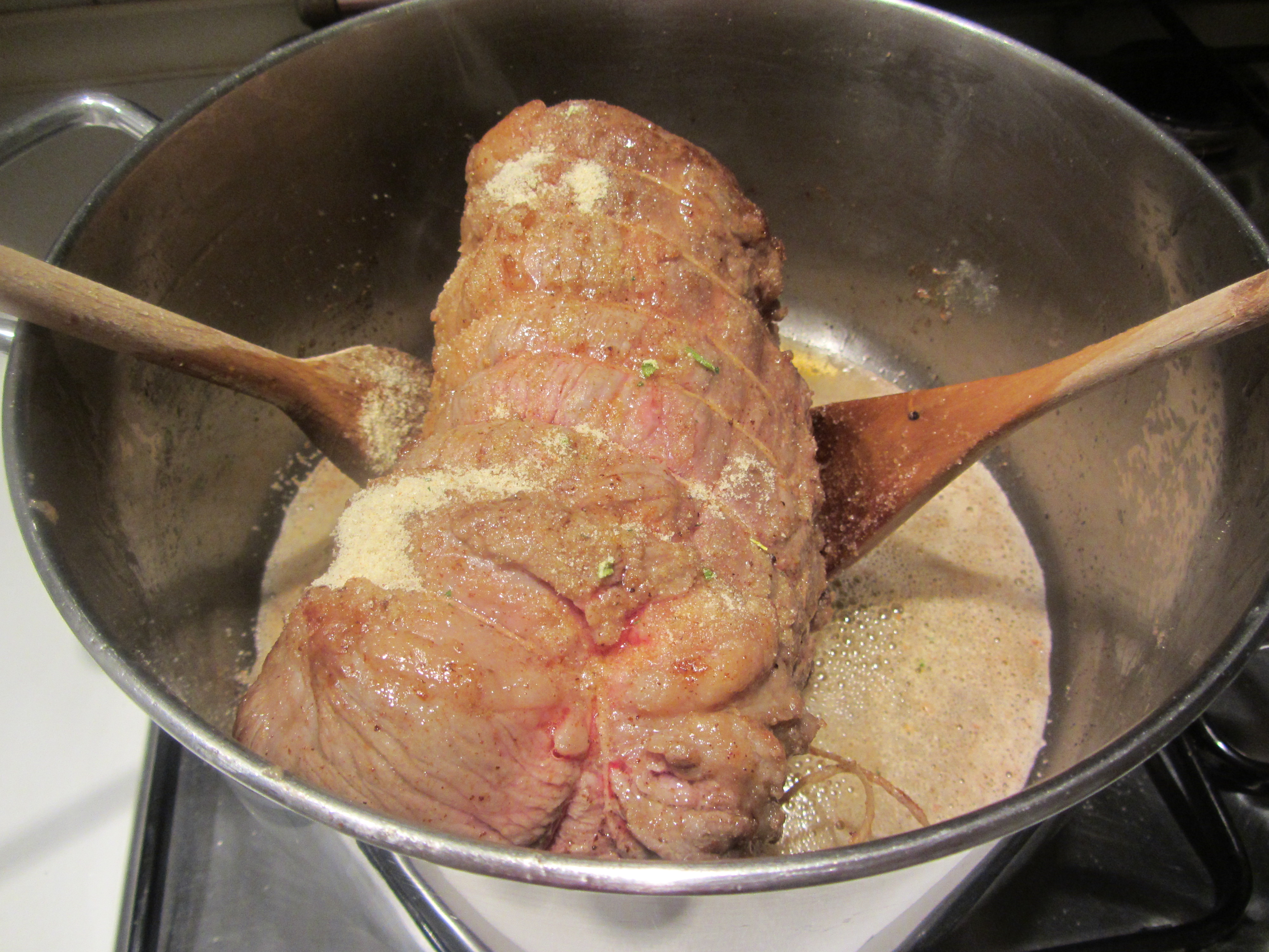 Rosolare la carne da tutti i lati a fiamma medio alta.