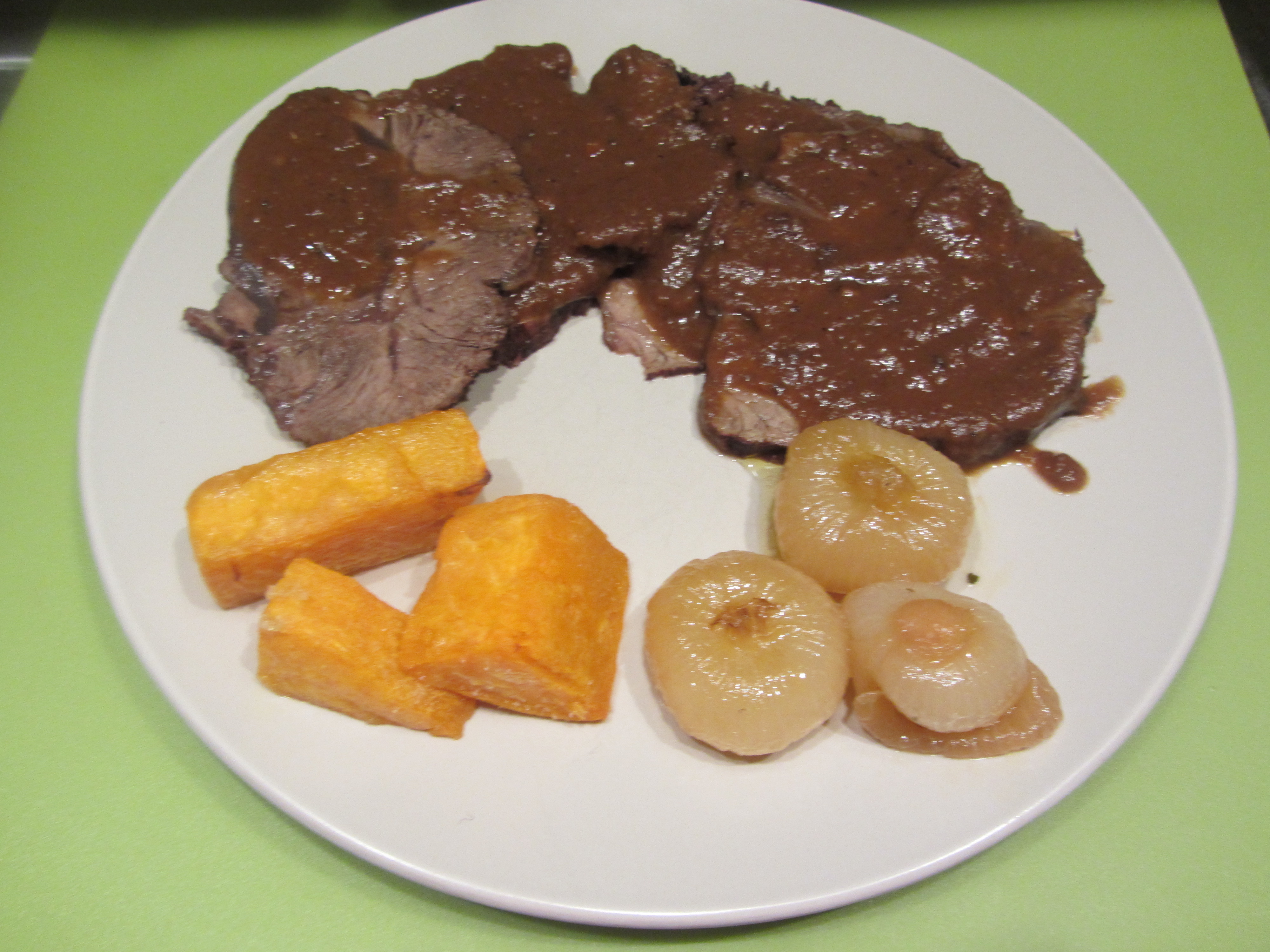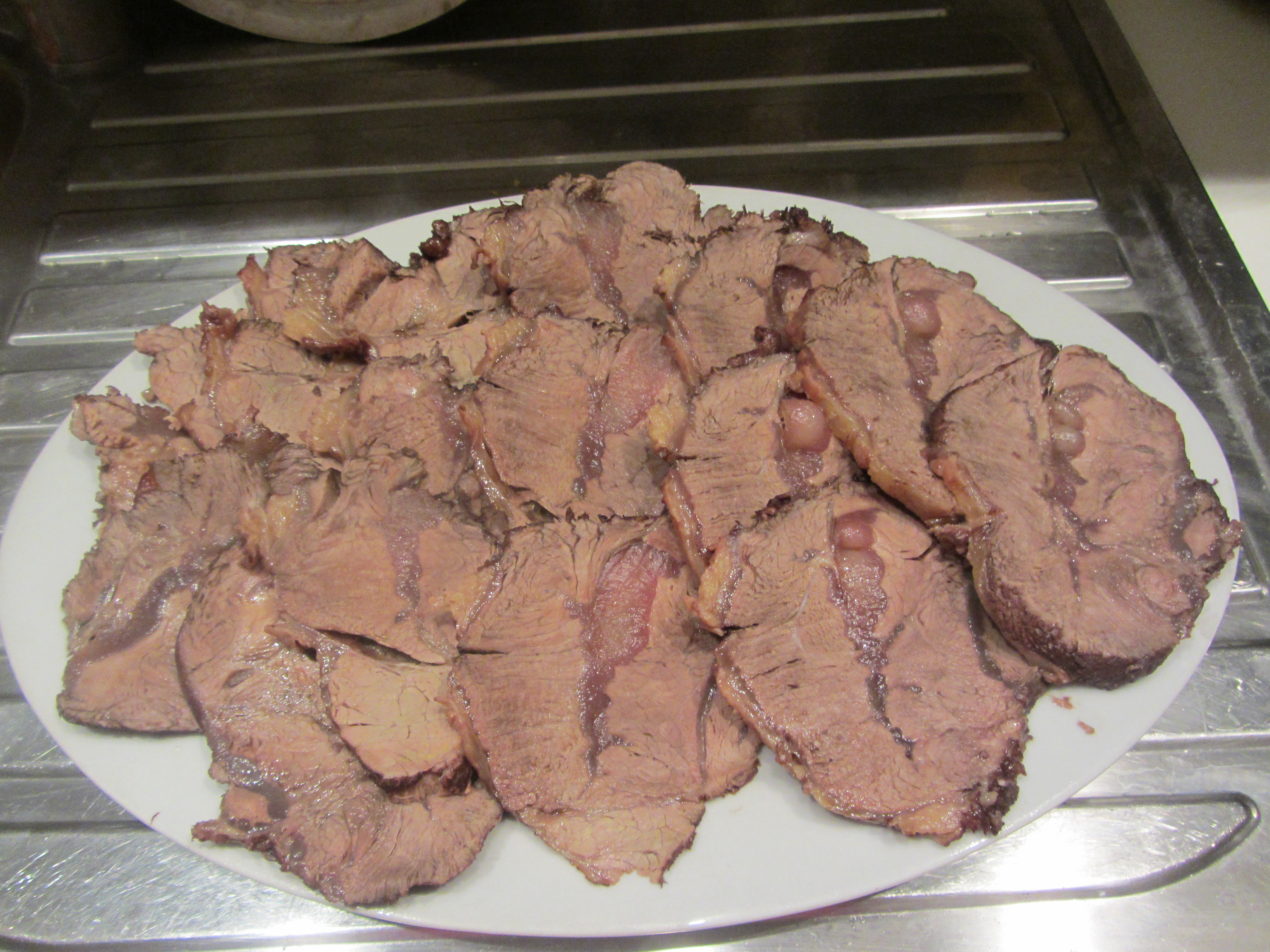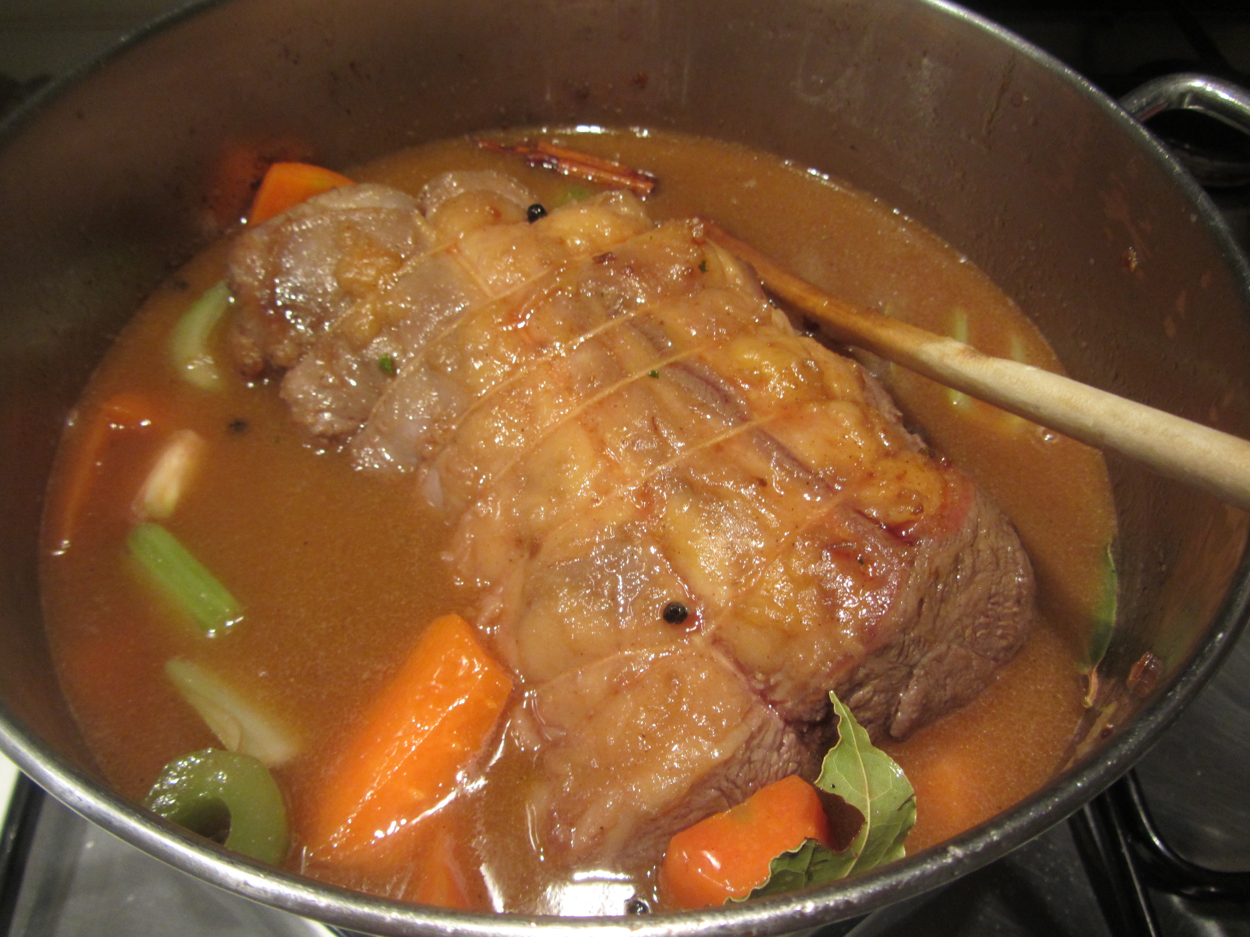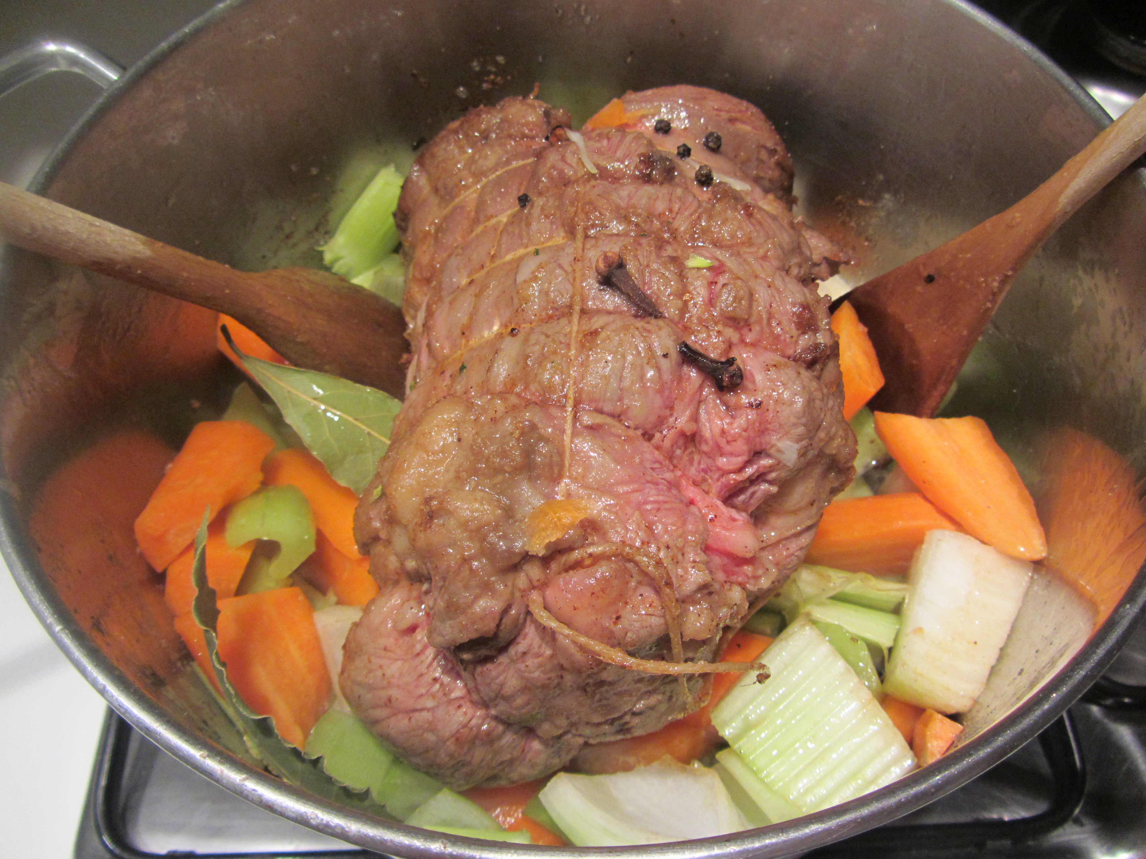 Non credo ci sia bisogno di introduzione per un piatto così classico. Può essere utile solo sciogliere qualche dubbio, marinata della carne si o no… Leggo che un esperimento porta a dire che il risultato finale non cambia, marinata delle verdure si o no, idem come sopra.. Per cui ho optato per eliminare la marinatura che avrebbe reso irrealizzabile il piatto per la sera stessa. Per quanto riguarda i tagli del manzo conviene un taglio di seconda scelta tipo il cappello di prete o la punta, tagli più nobili, essendo privi di grasso, andrebbero lardellati, altrimenti la consistenza finale della carne risulterebbe dura.