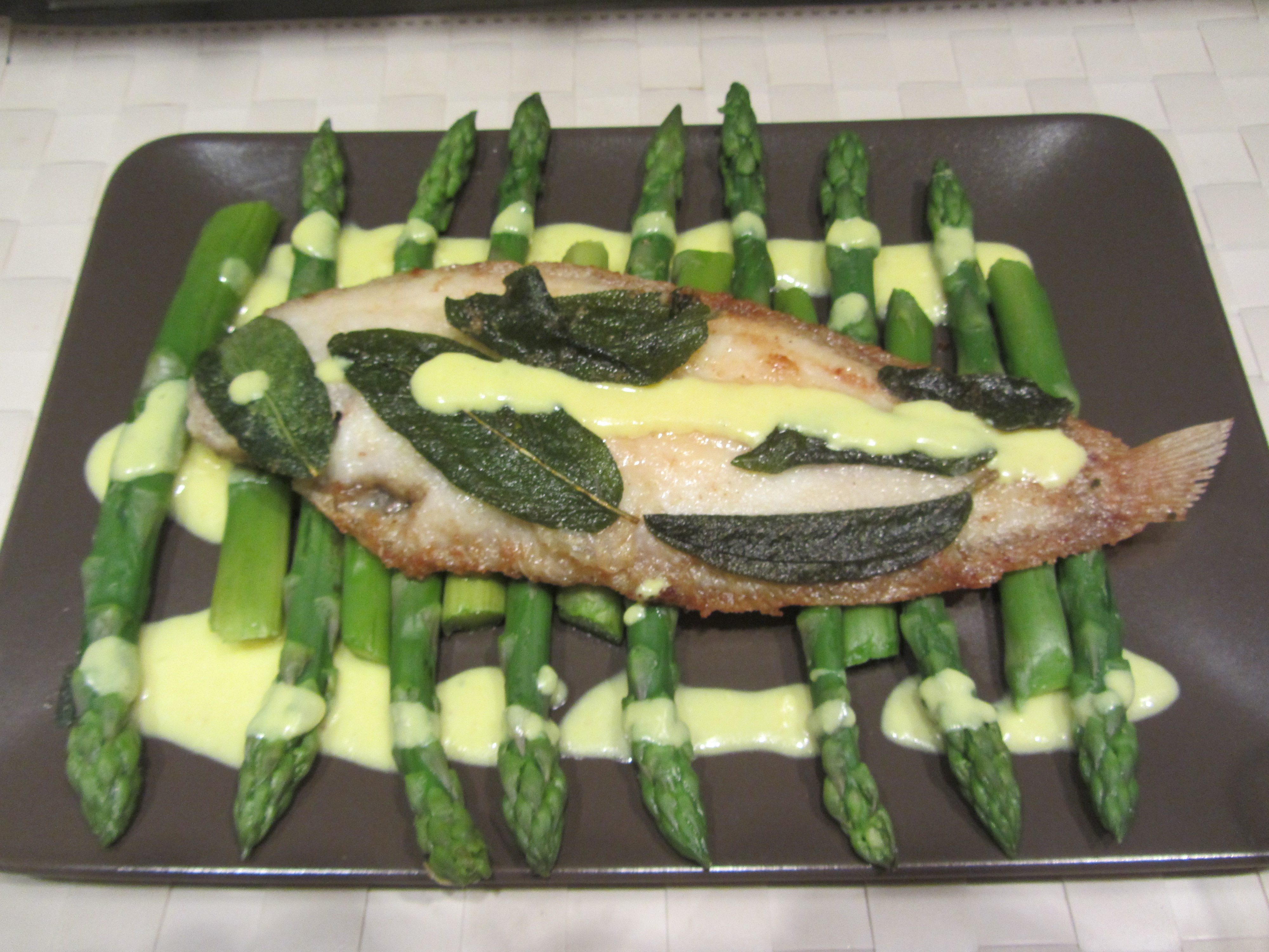 SOGLIOLA ALLA SALVIA SU LETTO DI ASPARAGI E SALSA OLANDESE ALLA CURCUMA