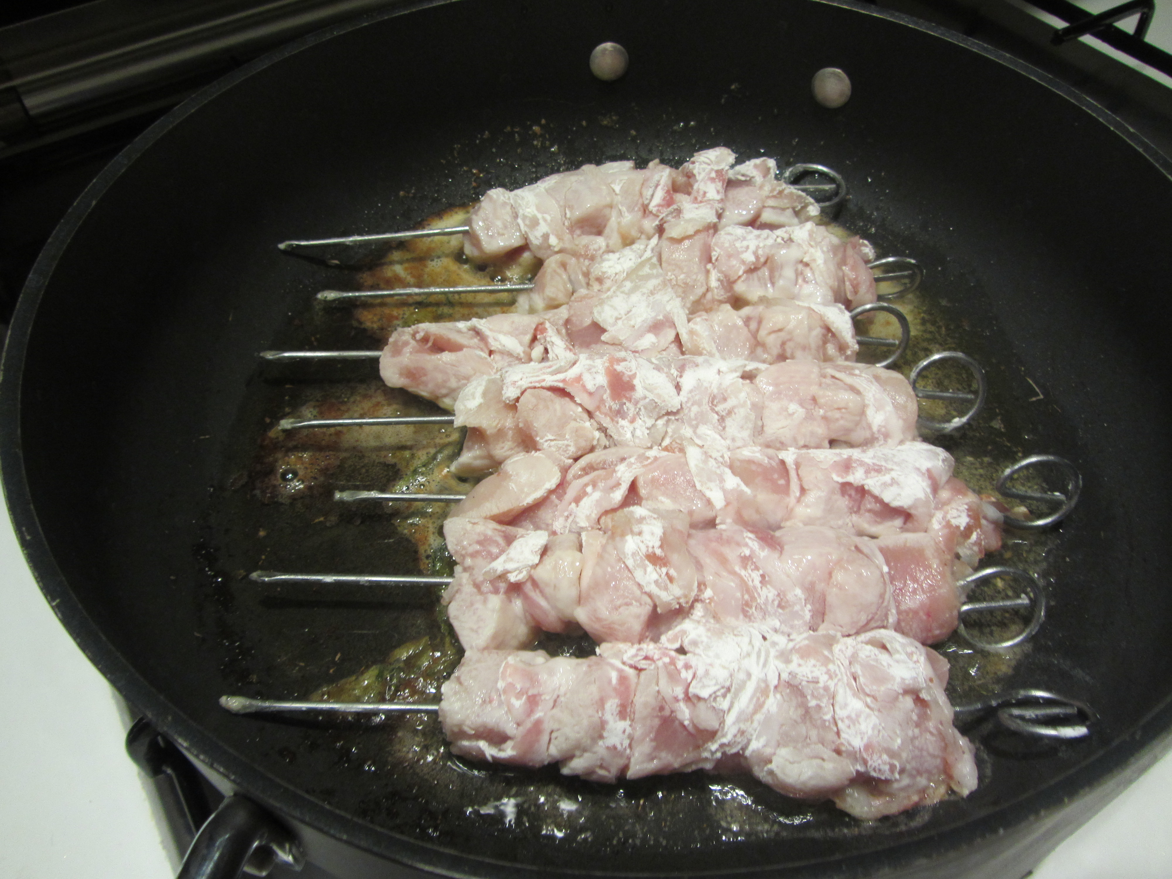 Rosolate gli spiedini ed alla fine, quando saranno cotti, sfumte con vino bianco.