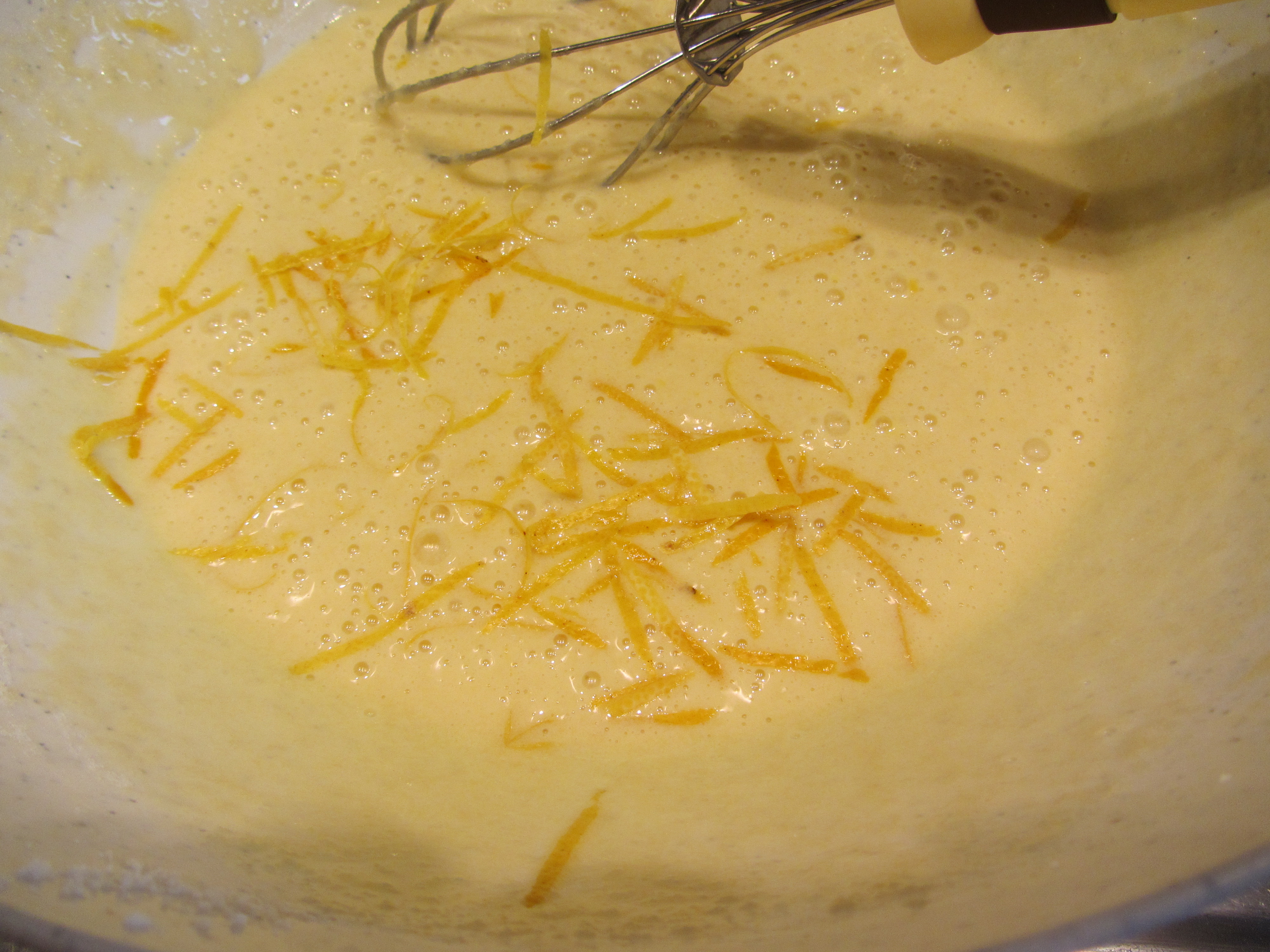Scaldare la panna a fuoco dolcissimo e, al primo bollore, spegnere la fiamma.