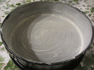 Imburrare ed infarinare una teglia a cerniera.