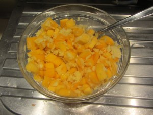 Incorporate nella miscela prima ottenuta e mescolate dal basso verso l’alto fino ad ottenere un composto omogeneo.