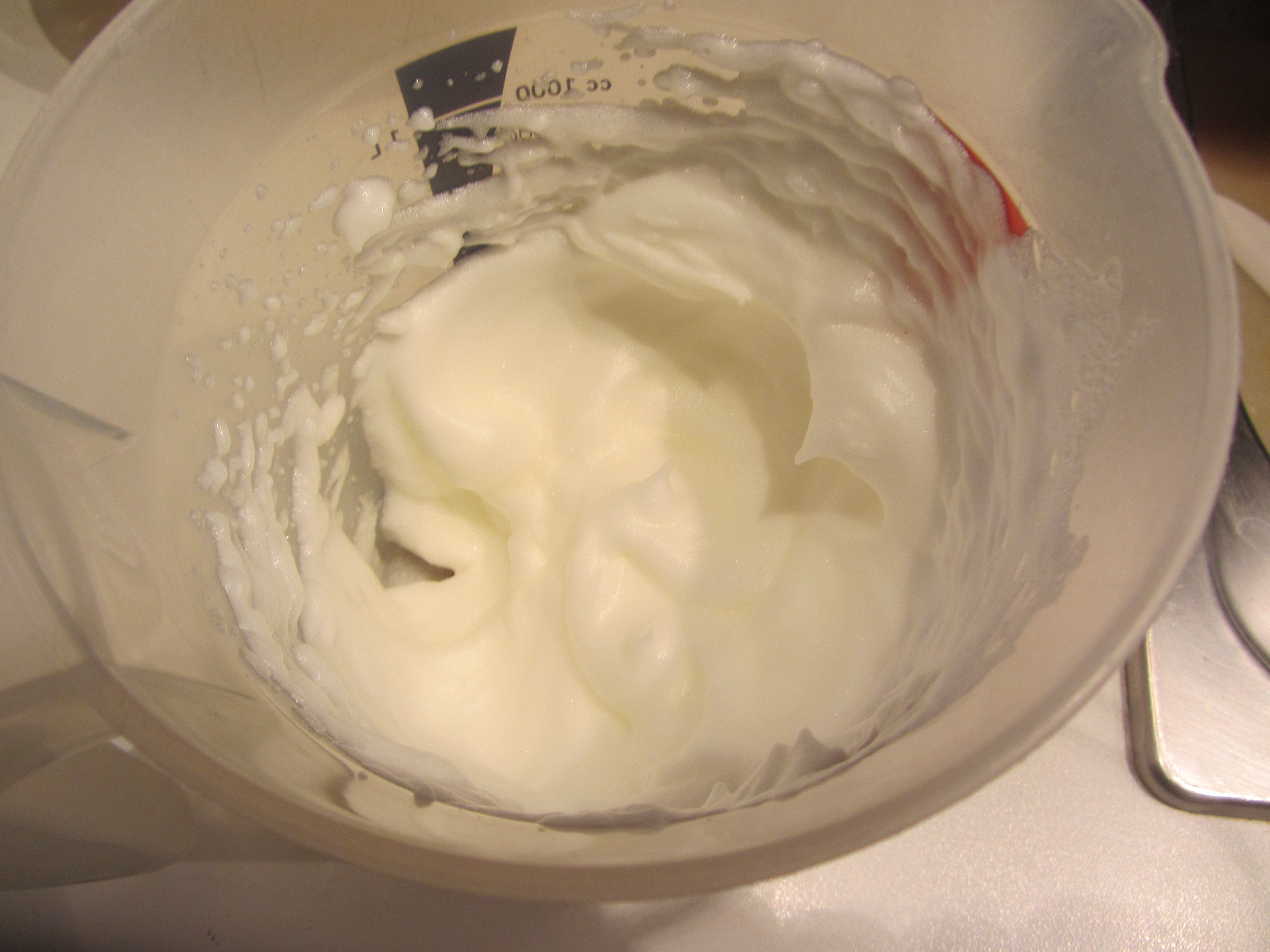 Prelevate gli albumi dal frigorifero, addizionate un pizzico di sale e montate a neve.