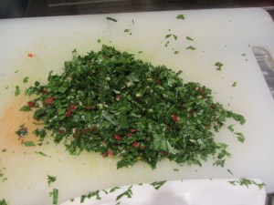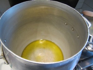 Rosolate leggermente uno spicchio d’aglio privato del germoglio nell’olio.