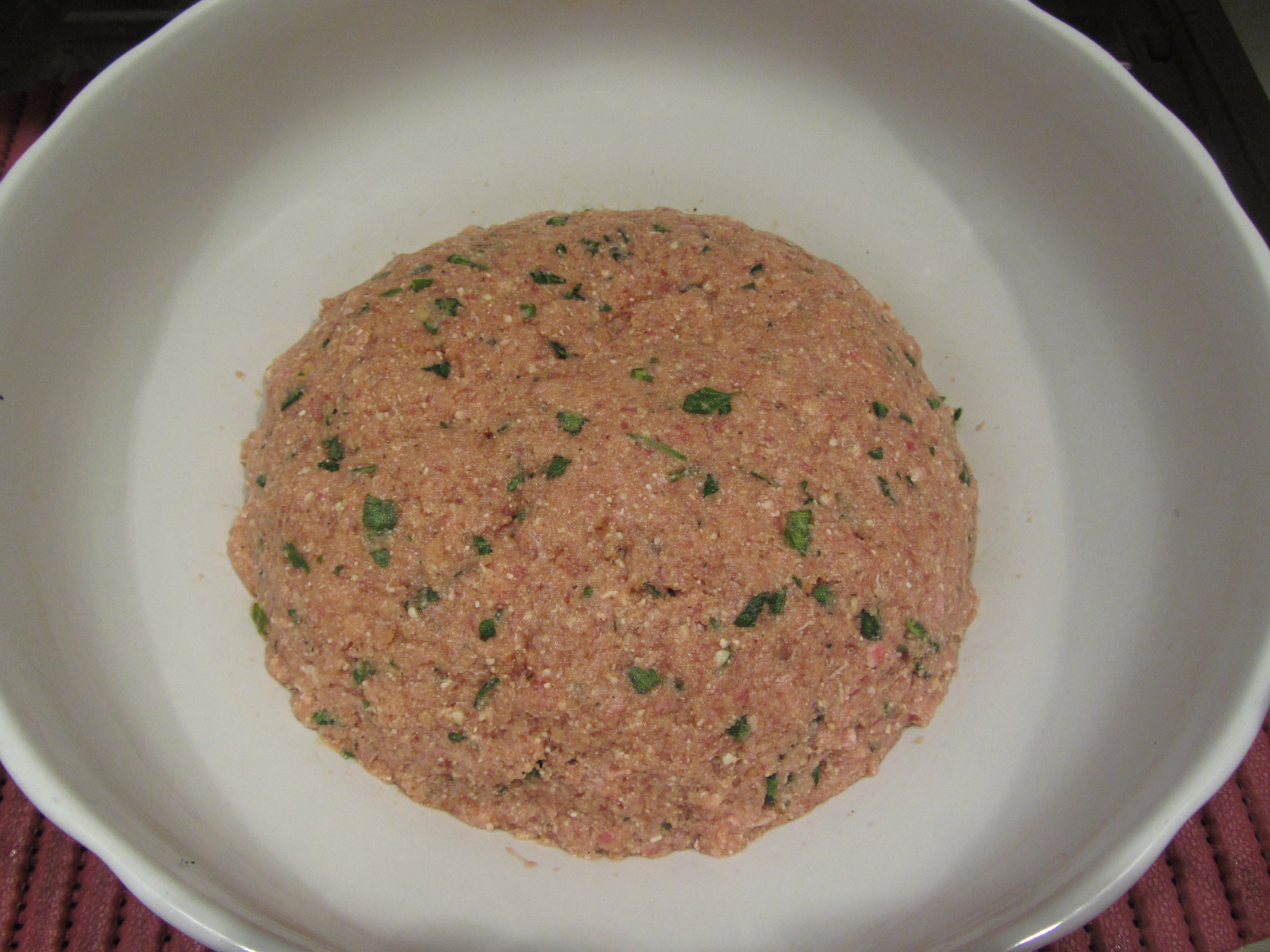 carne trita, formaggio parmigiano, formaggio pecorino, sale, prezzemolo tritato, pepe nero, paprika dolce, uova, aglio in polvere.