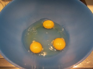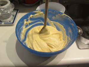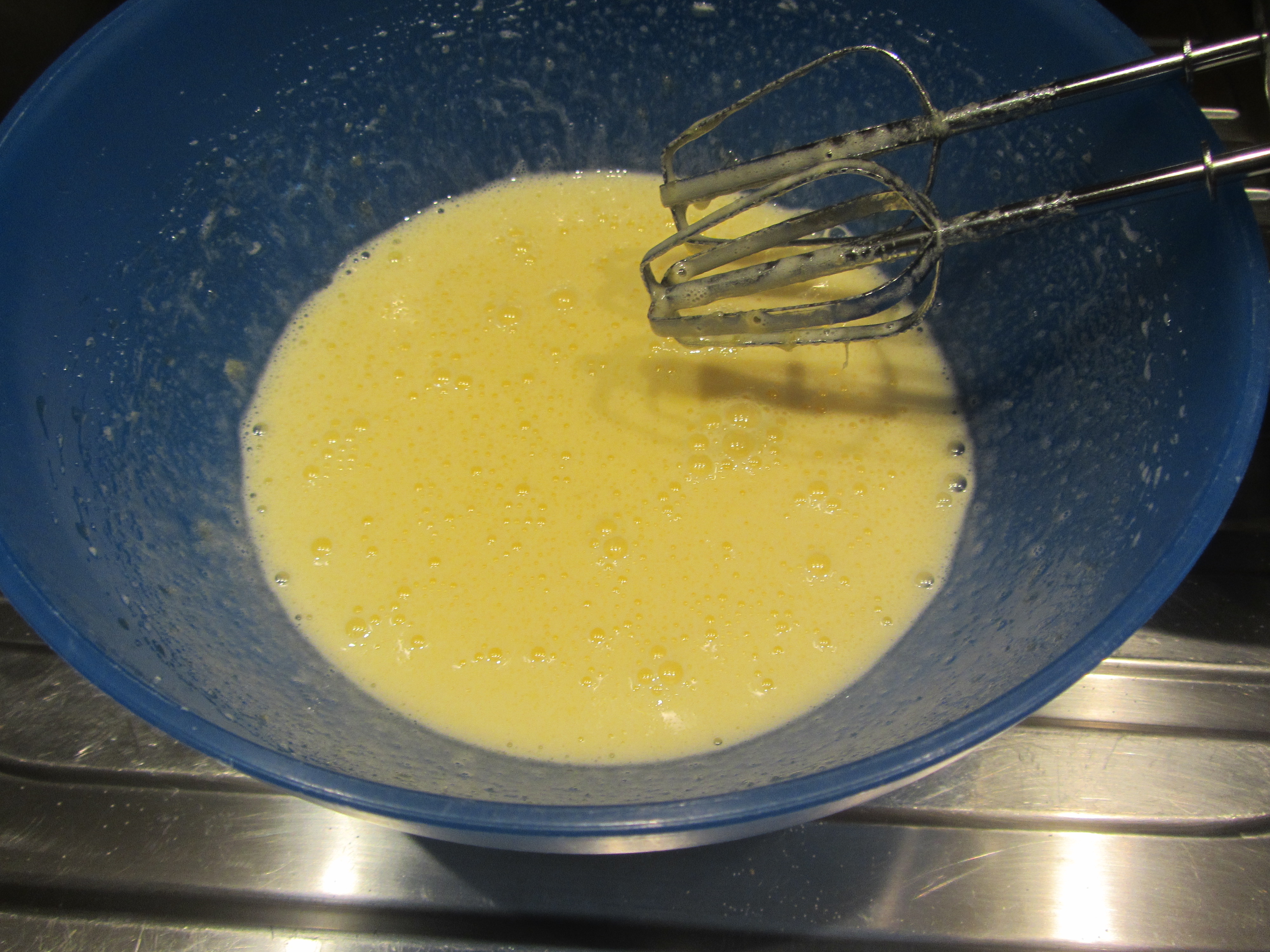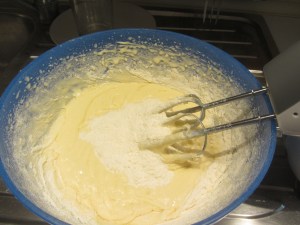 Aggiungere la miscela farina/fecola, in porzioni, alla crema di tuorli d’uova, sbattendo.