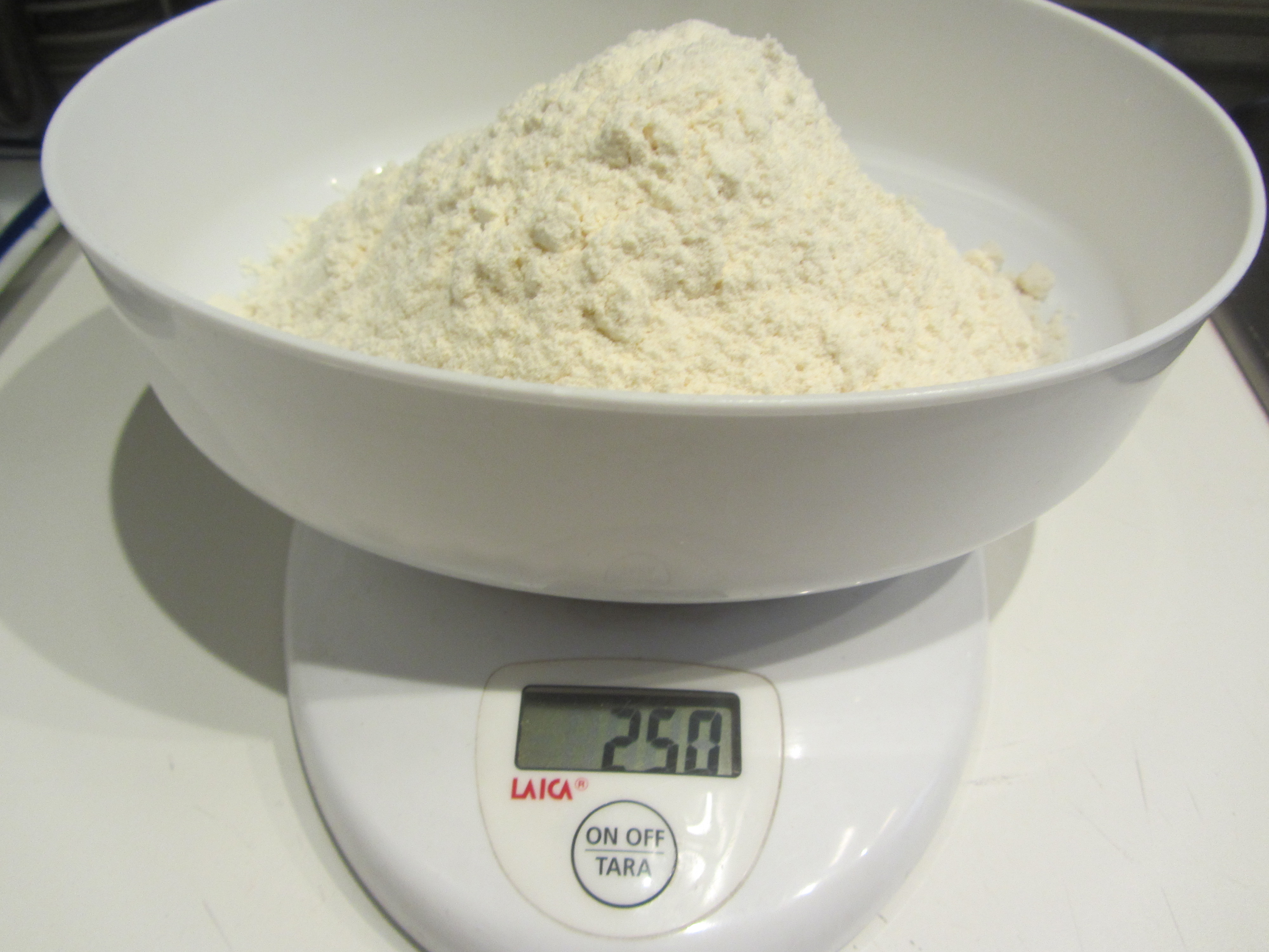 Pesate la fecola (75 g) (100 farina + 75 fecola). Mescolate la fecola con la farina.