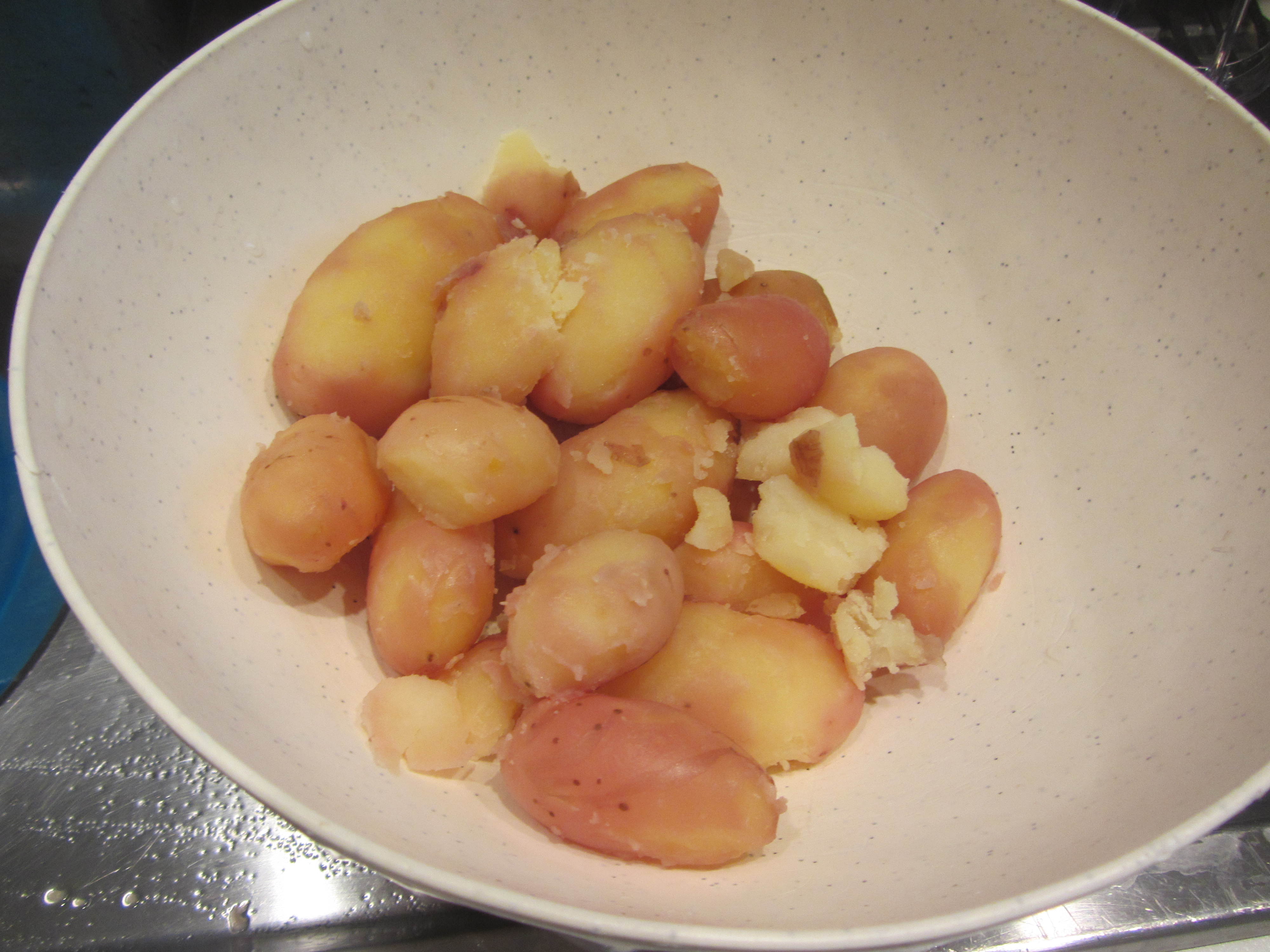 Schiacciate le patate mediante l’utilizzo di uno schiaccia-patate.