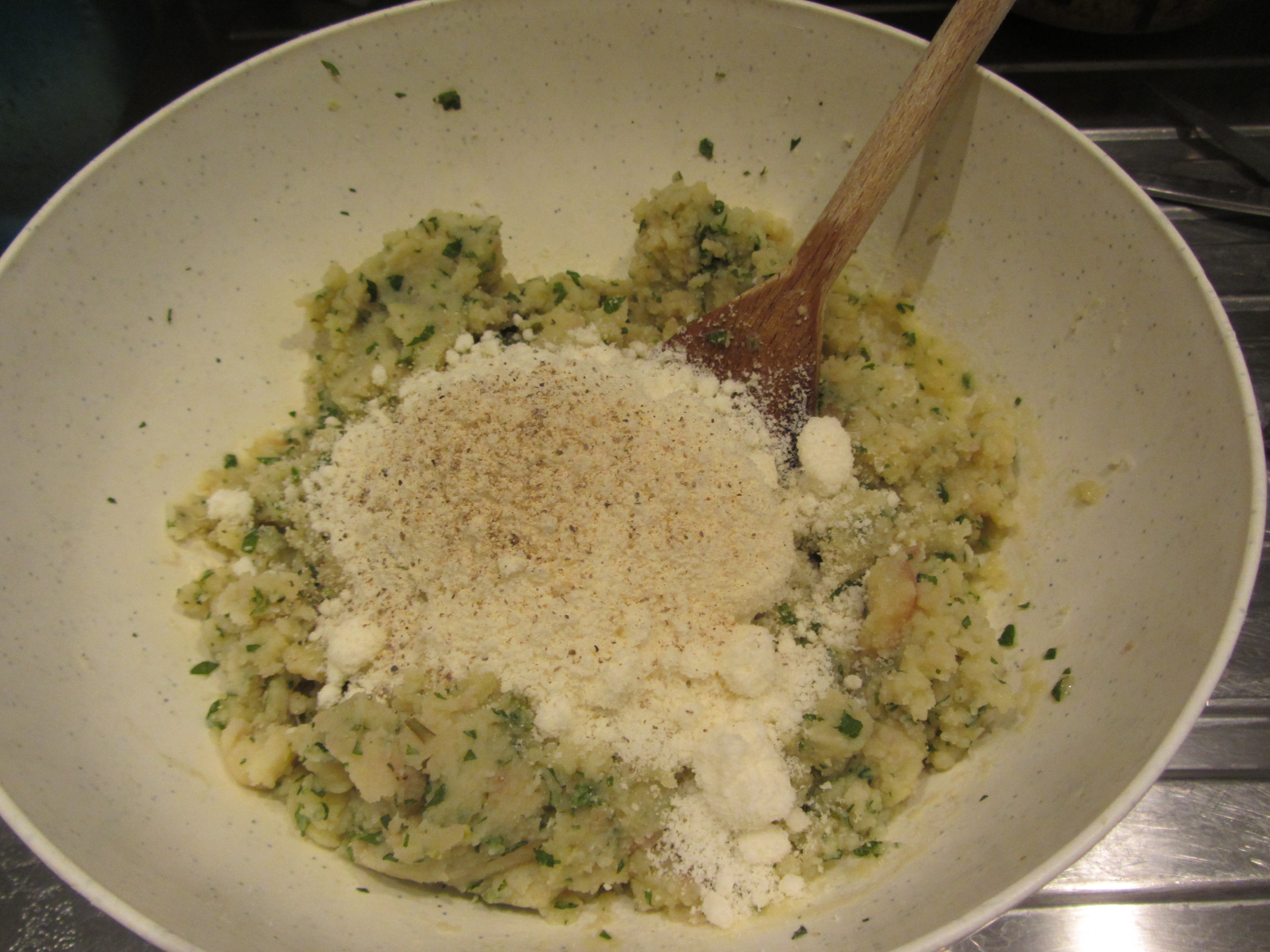 Unite il trito alle patate e mescolare.