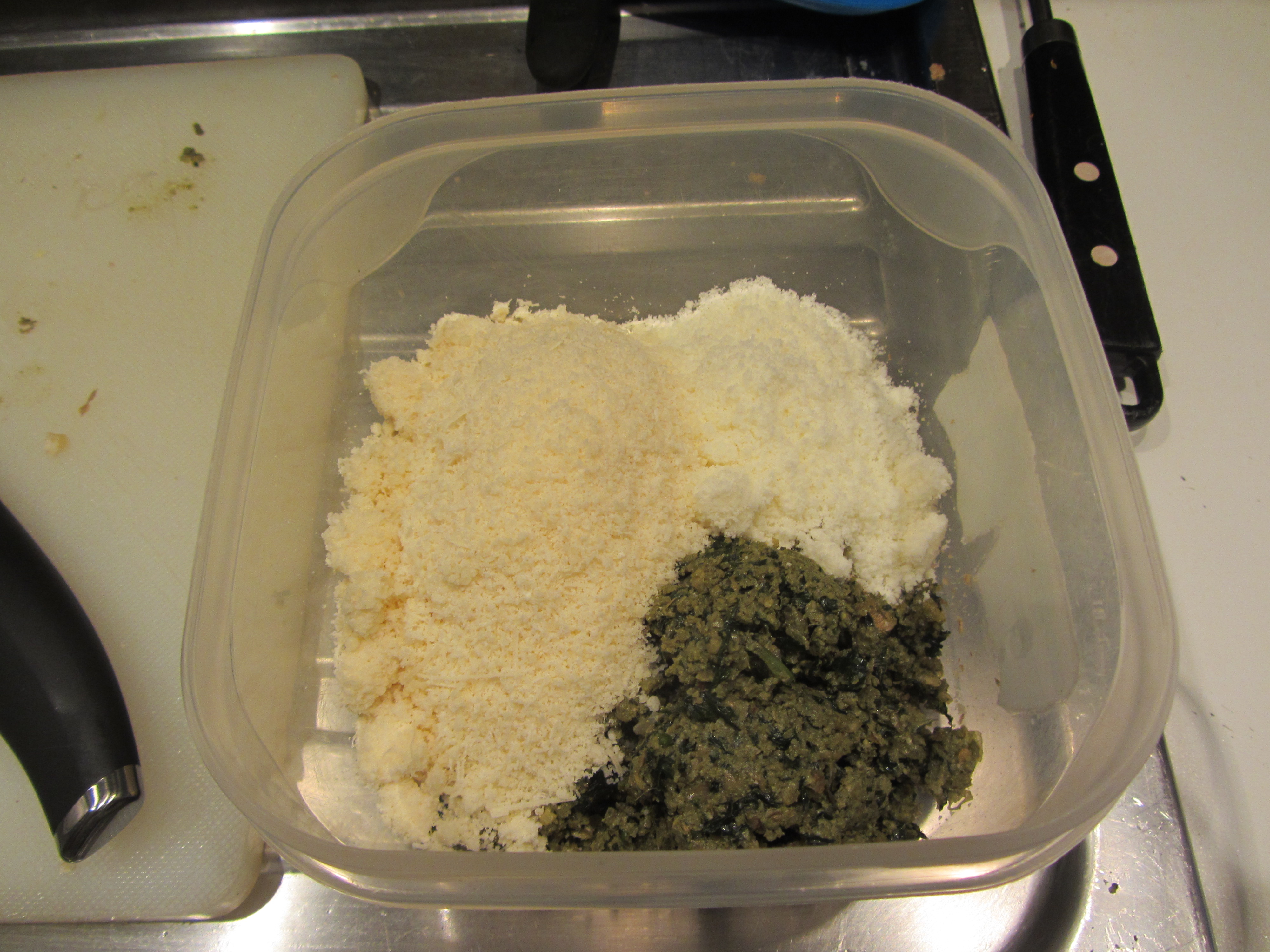 ed amalgamare 3/4 di parmigiano ed 1/4 di pecorino.