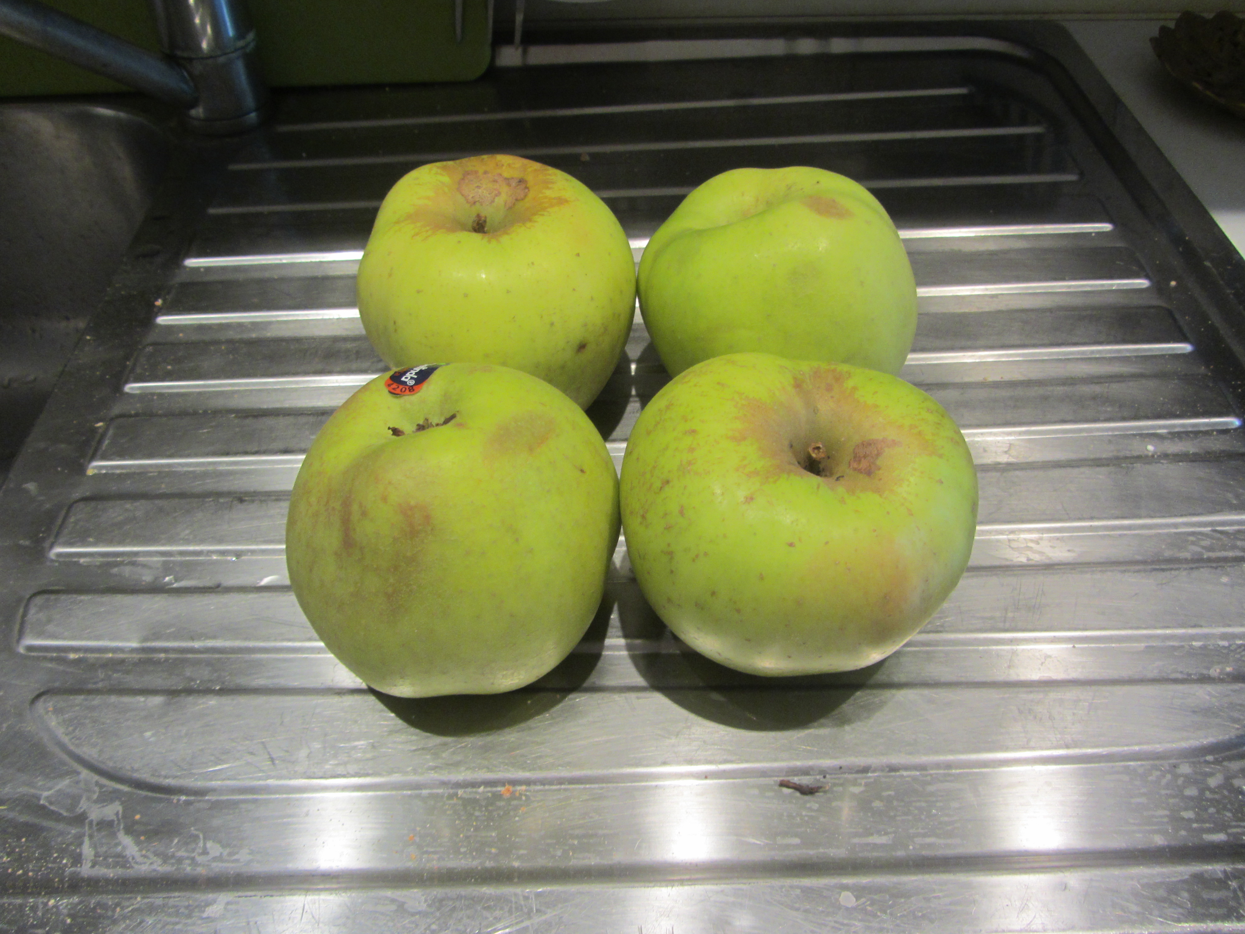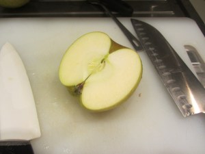 Puliamo mezza mela renetta e facciamone dei dadi.