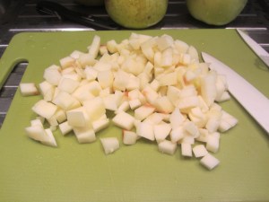 Ridurre le mele a piccoli cubi.