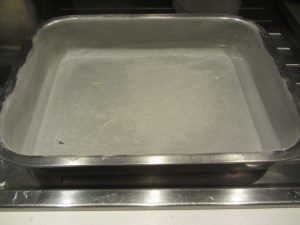Imburrare e infarinare una teglia a cerniera.