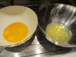 Separate gli albumi dai tuorli di 8 uova. Ponete gli albumi in frigorifero.