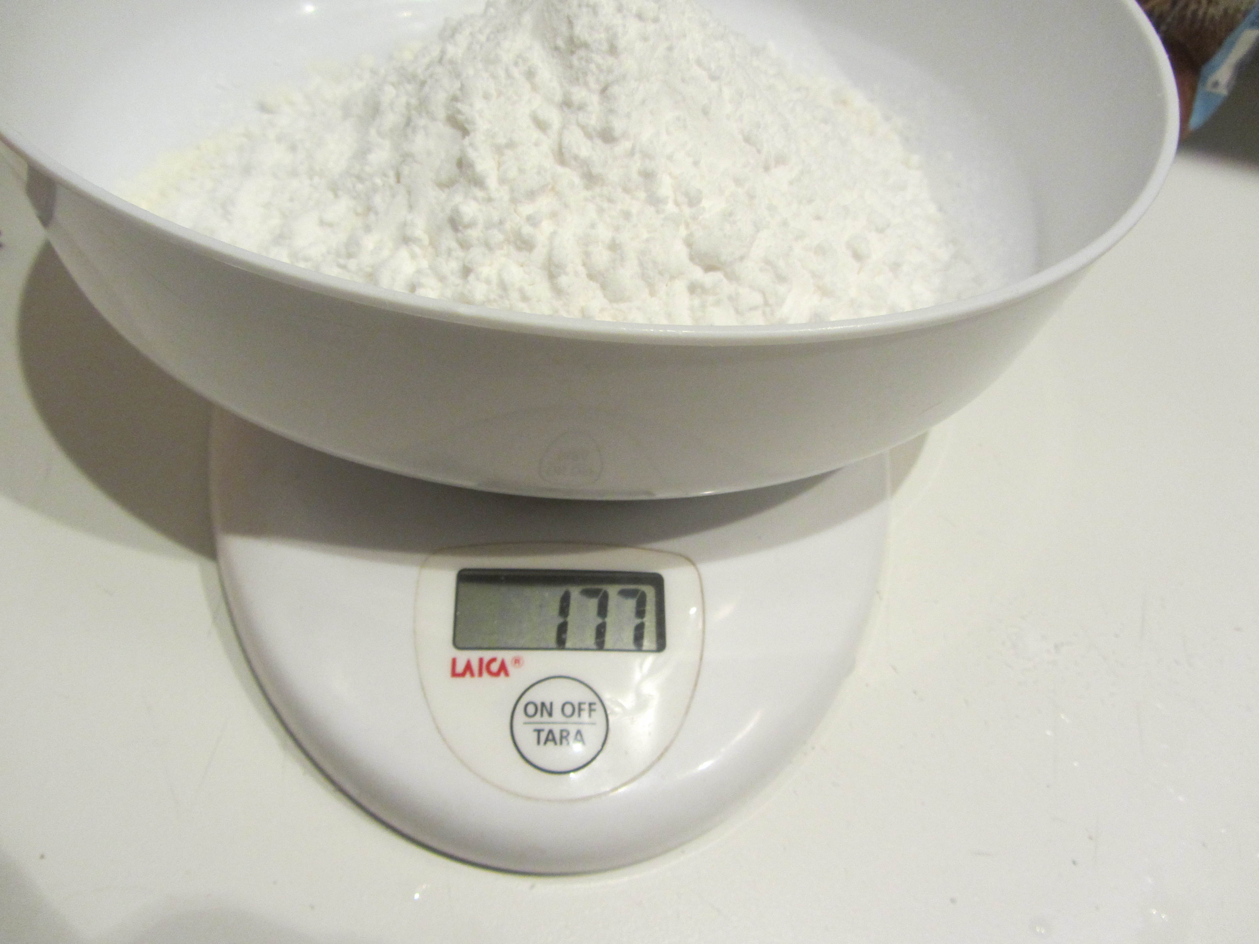 Pesate la fecola (75 g) (100 farina + 75 fecola). Mescolate la fecola con la farina.
