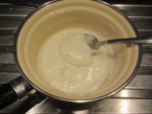 Scaldate fino al primo bollore, mescolando di continuo, per fludificare.