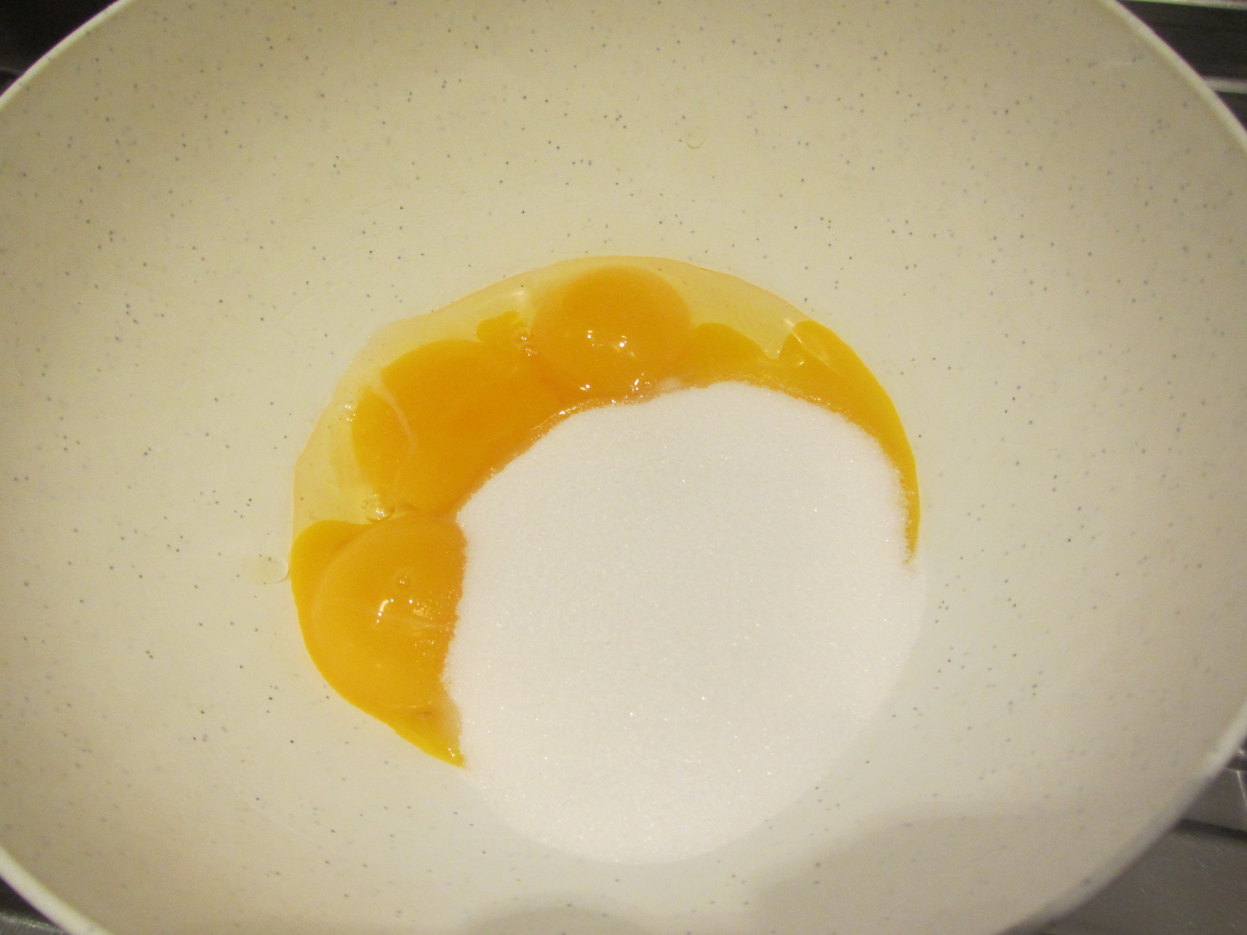 Aggiungete lo zucchero ai tuorli.