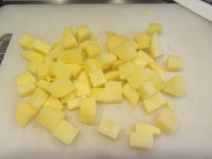 Lessate i cubetti in acqua salata sino a quando una forchetta riesce facilmente ad infilzarli.