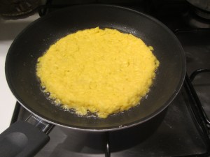 Rompere le uova e sbatterle senza separare gli albumi dai tuorli.