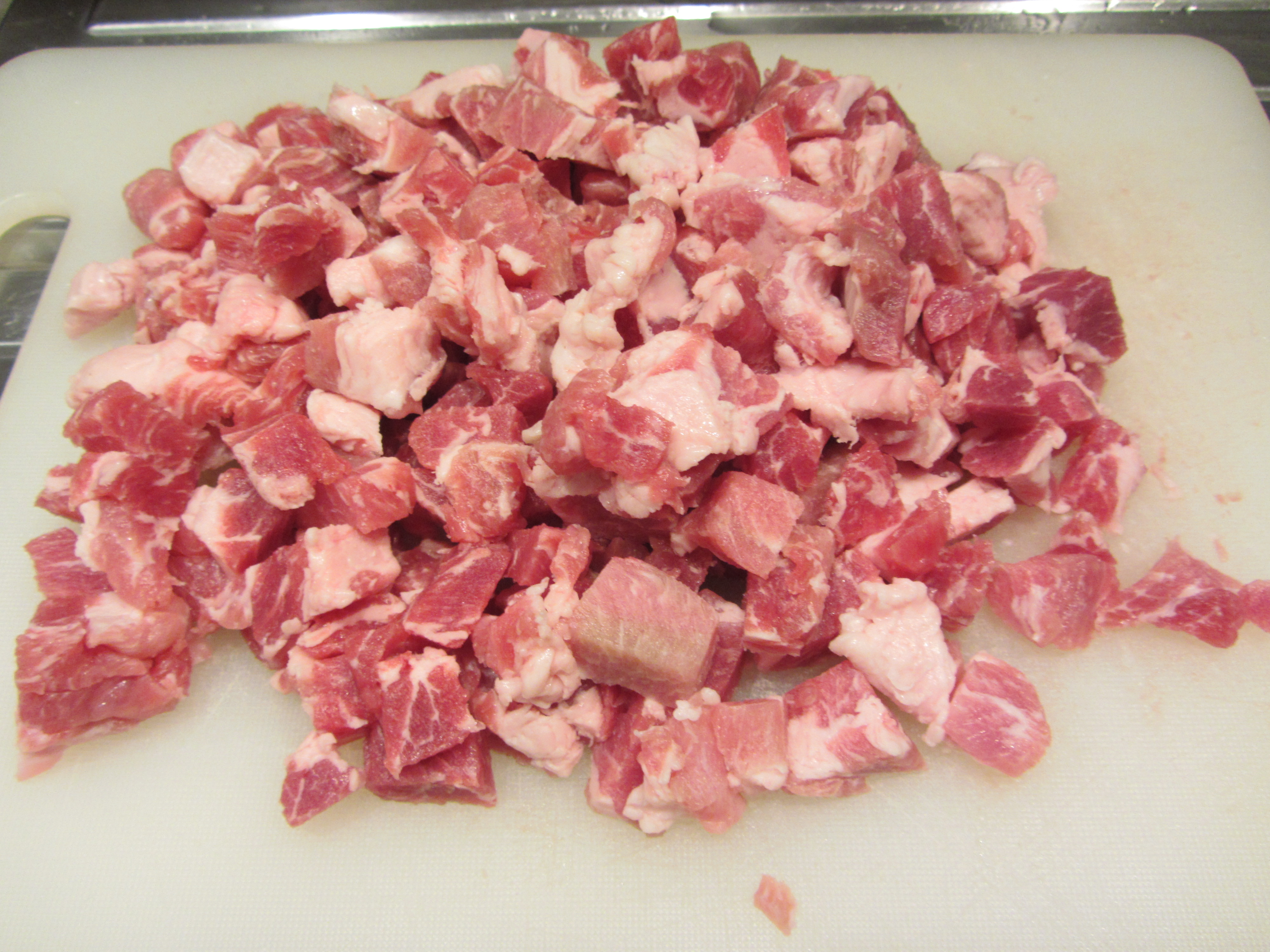 Riducete la carne in dadini al massimo di un centimetro di spigolo: