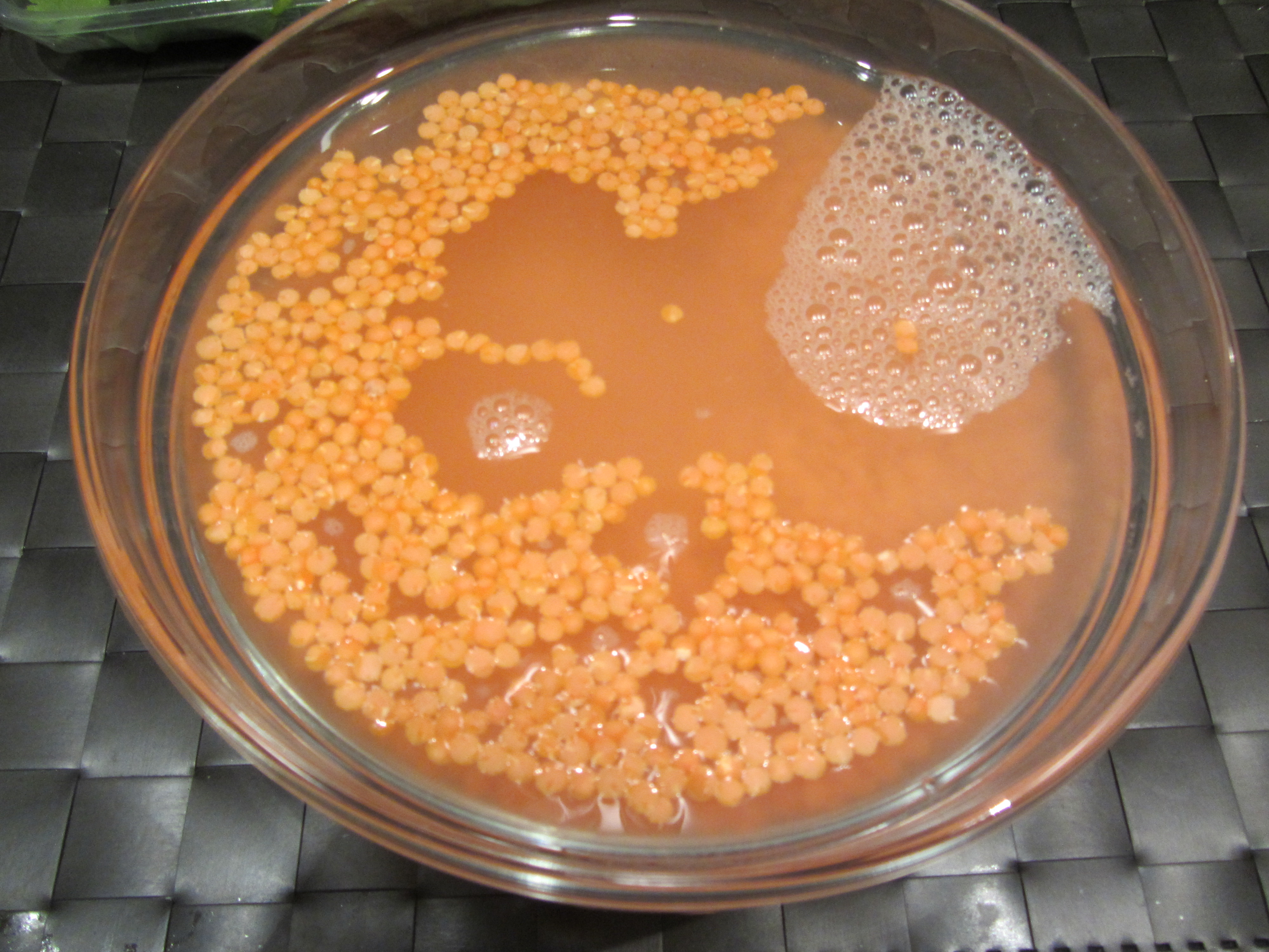 Lessate i filetti di merluzzo come da indicazioni del produttore, normalmente sei minuti da quando l’acqua riprende a bollire. Acqua preventivamente salata ovviamente. Metetteli a scolare.